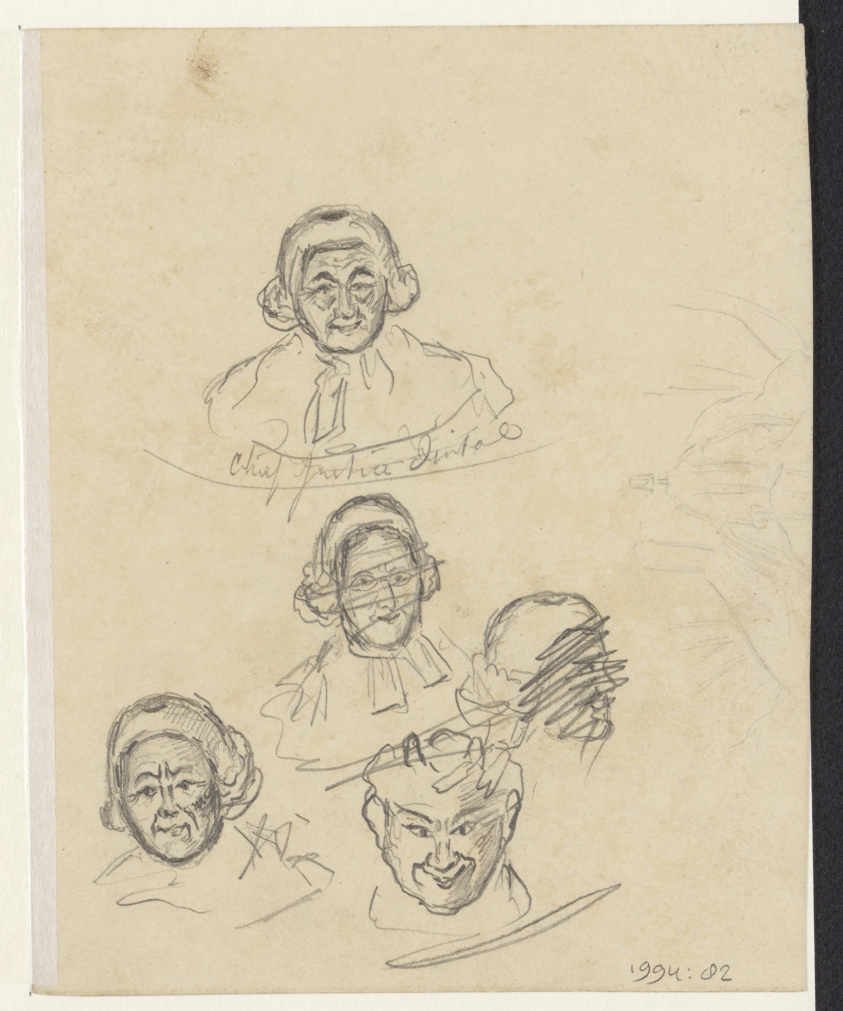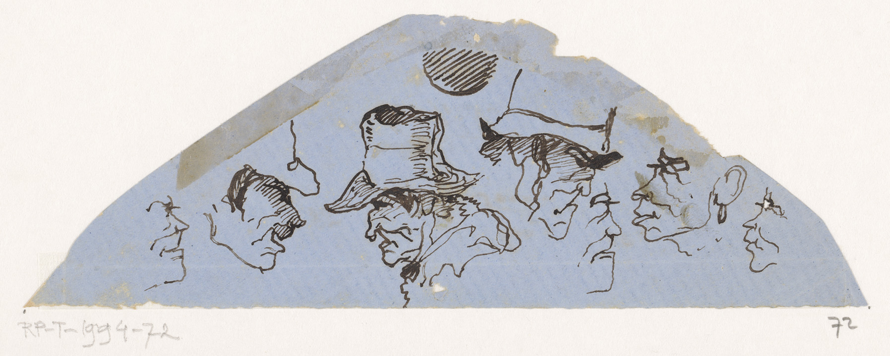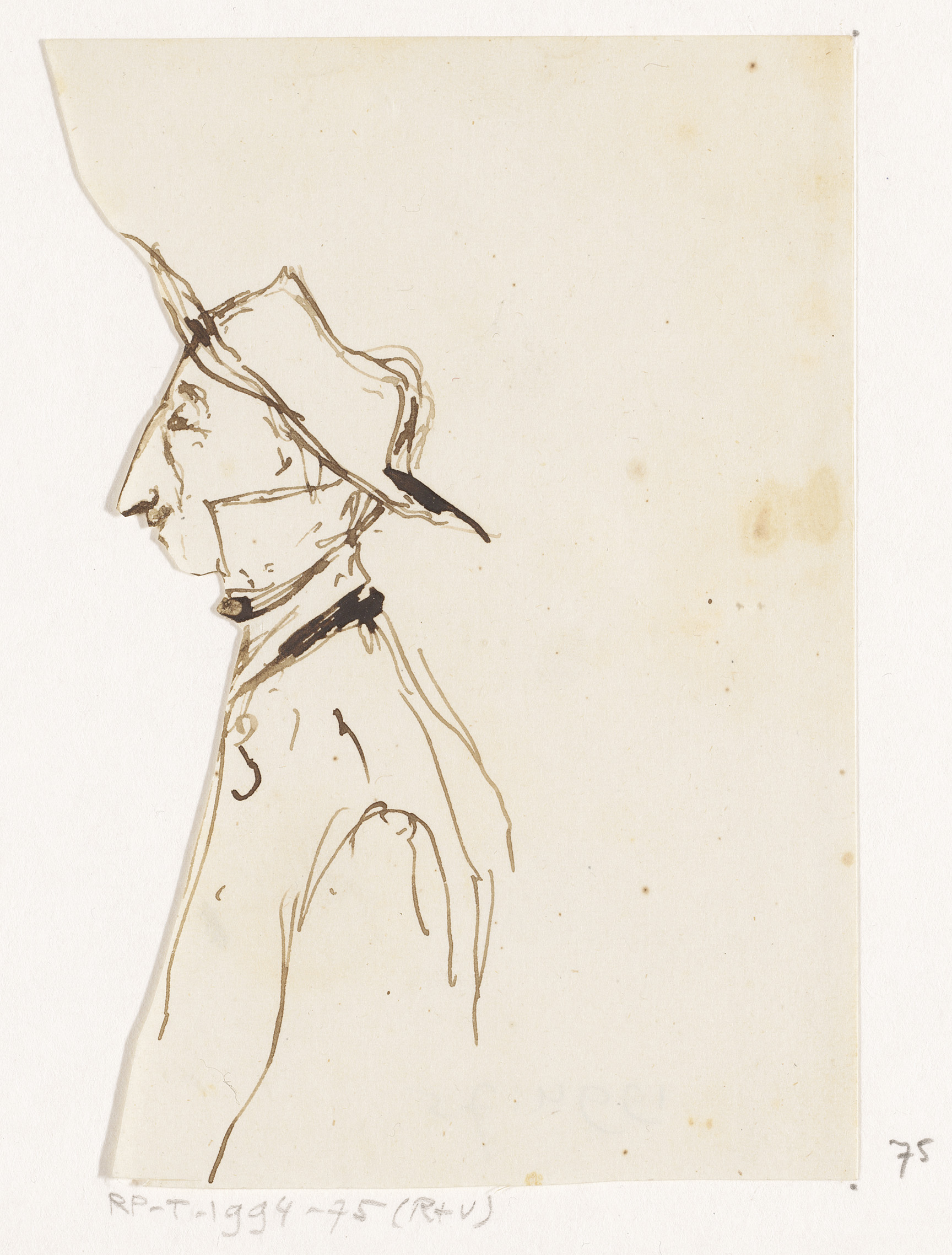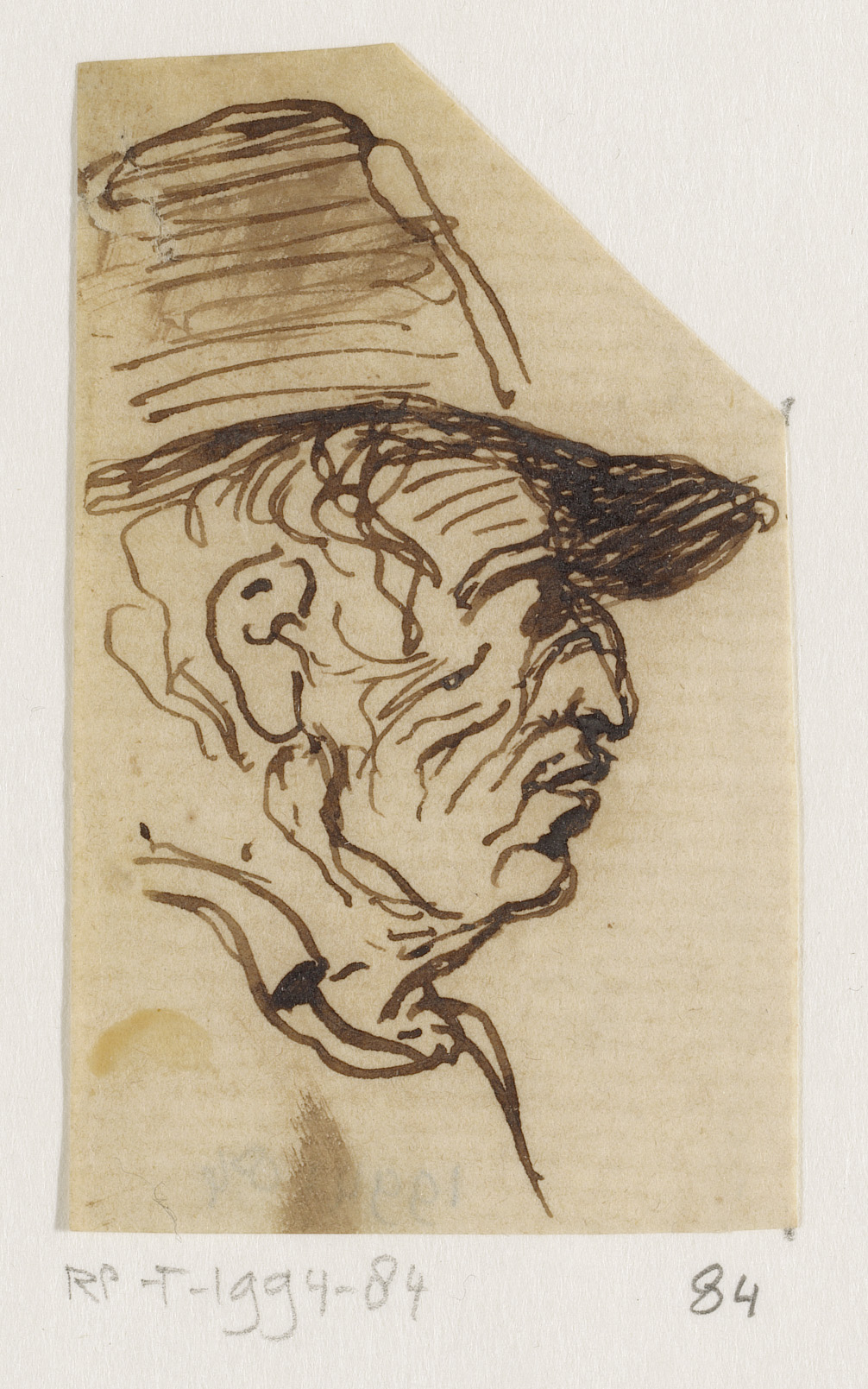 Hoofd van man met hoed, in profiel naar rechts