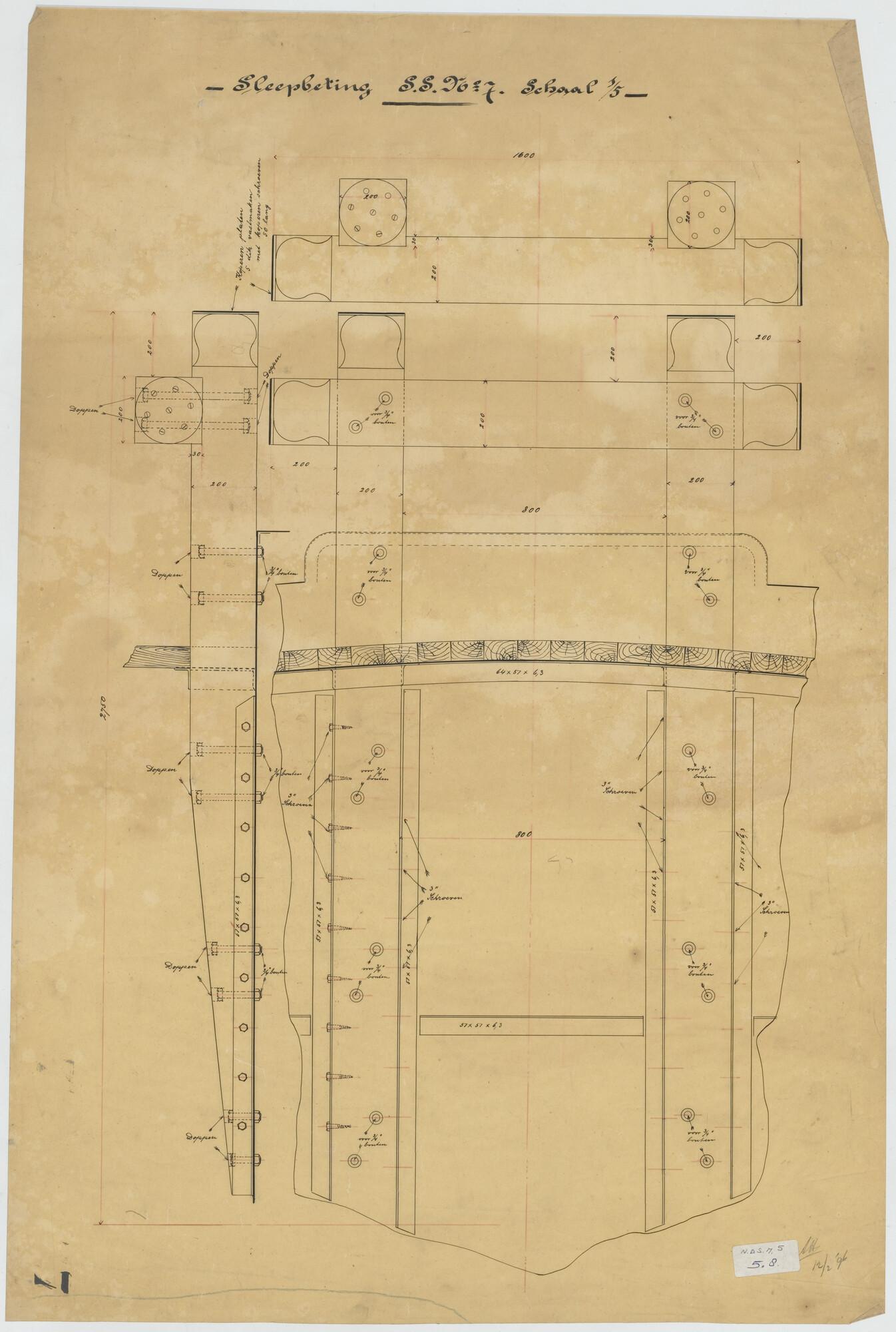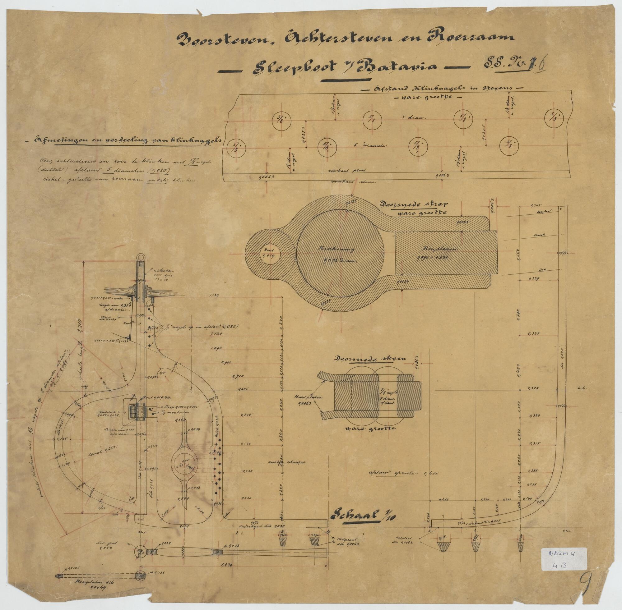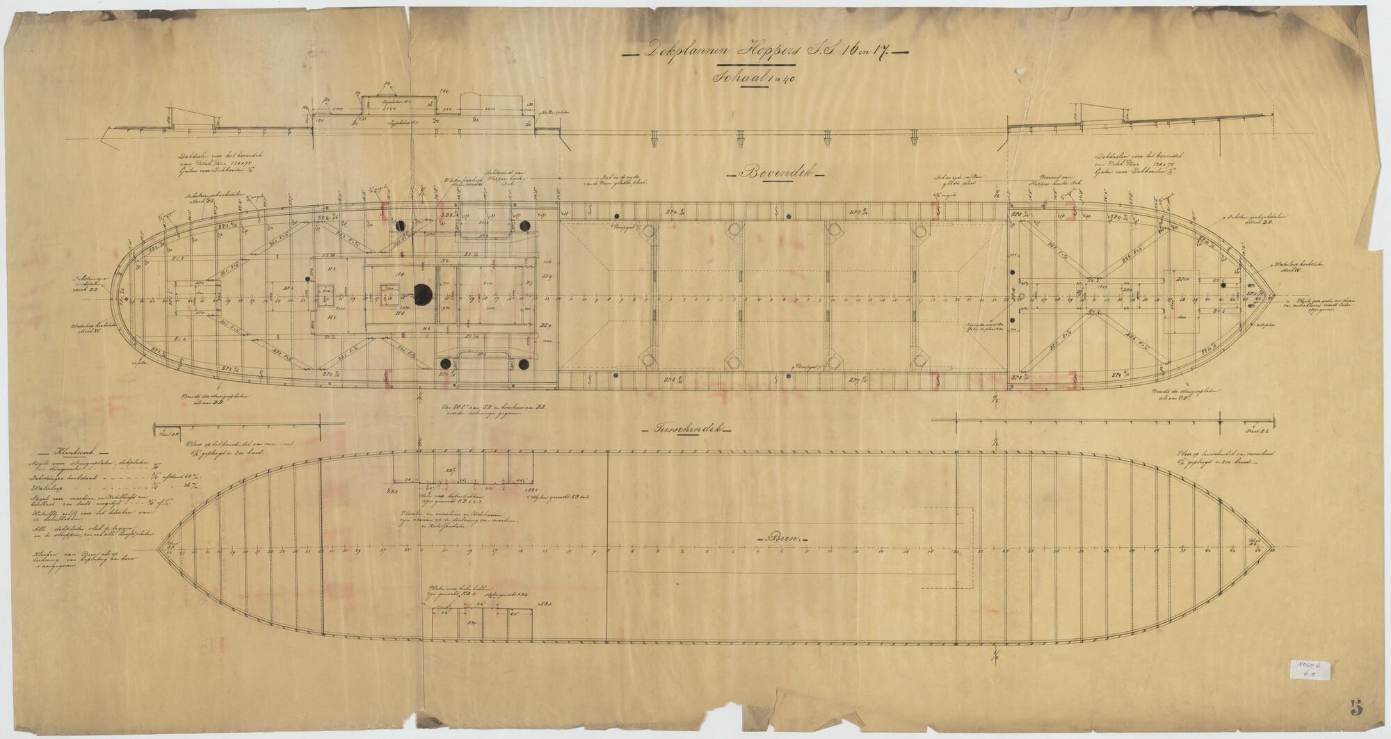 Stringerplan van de stoomsleepboot Batavia voor het ...