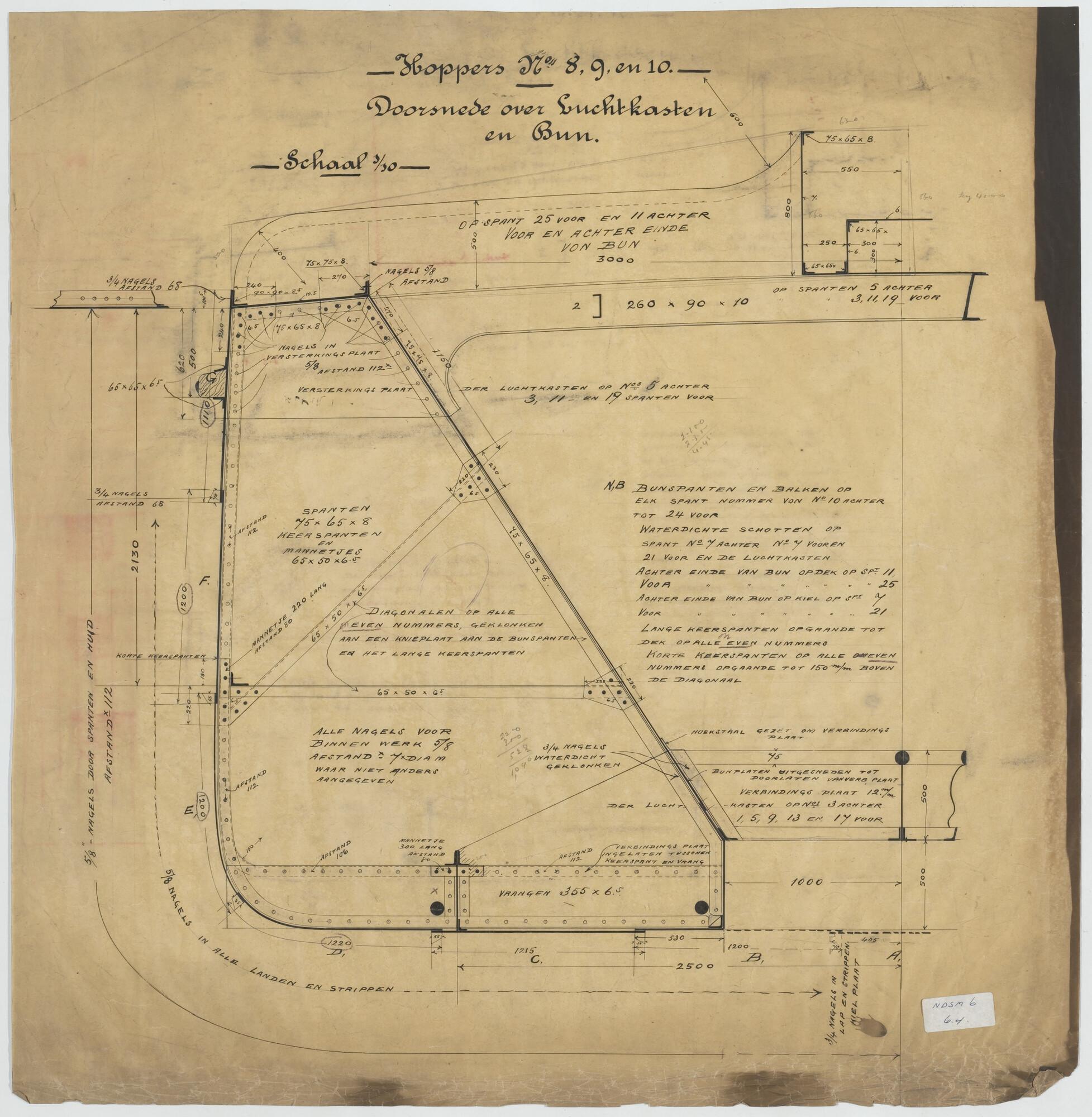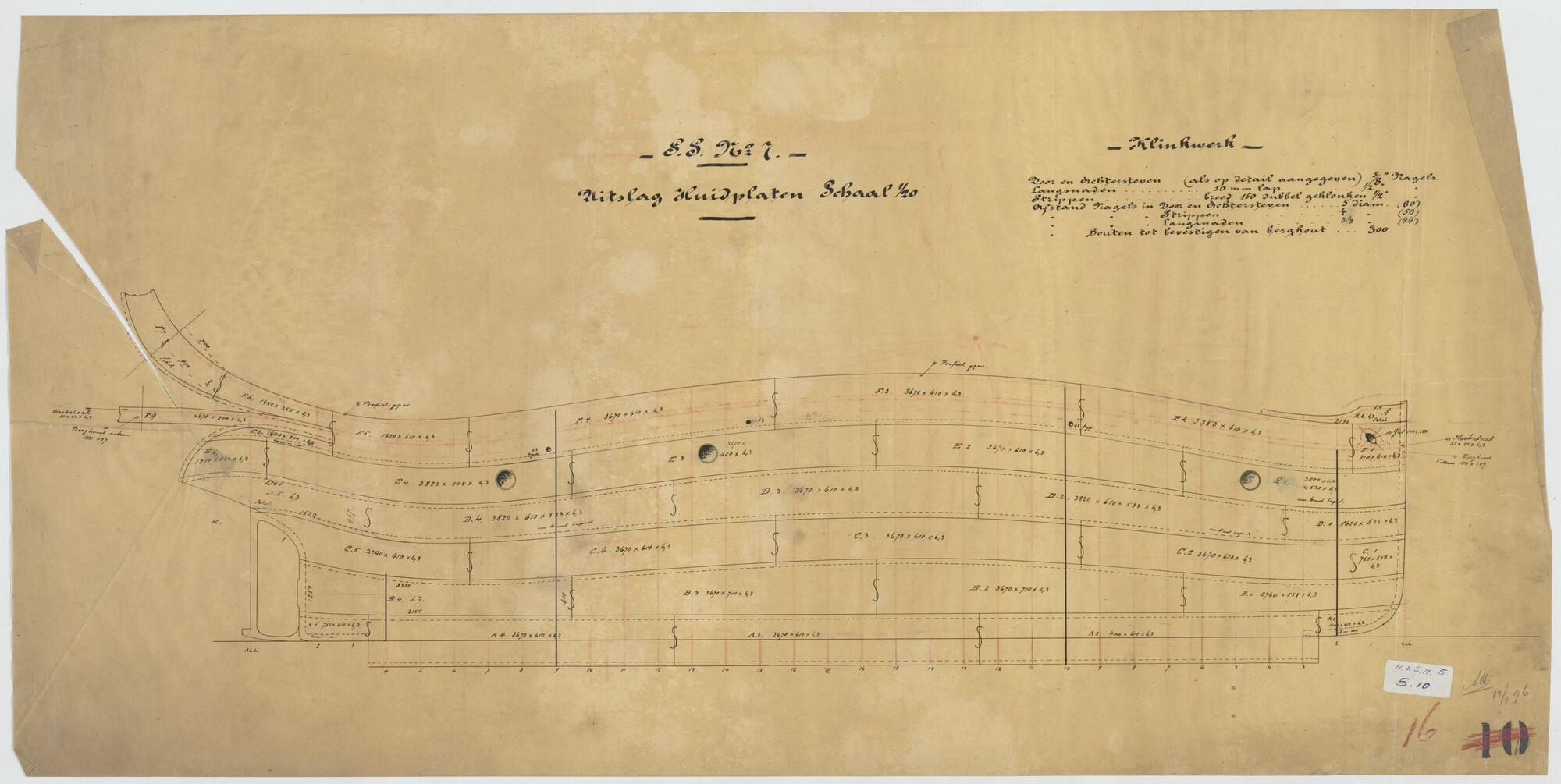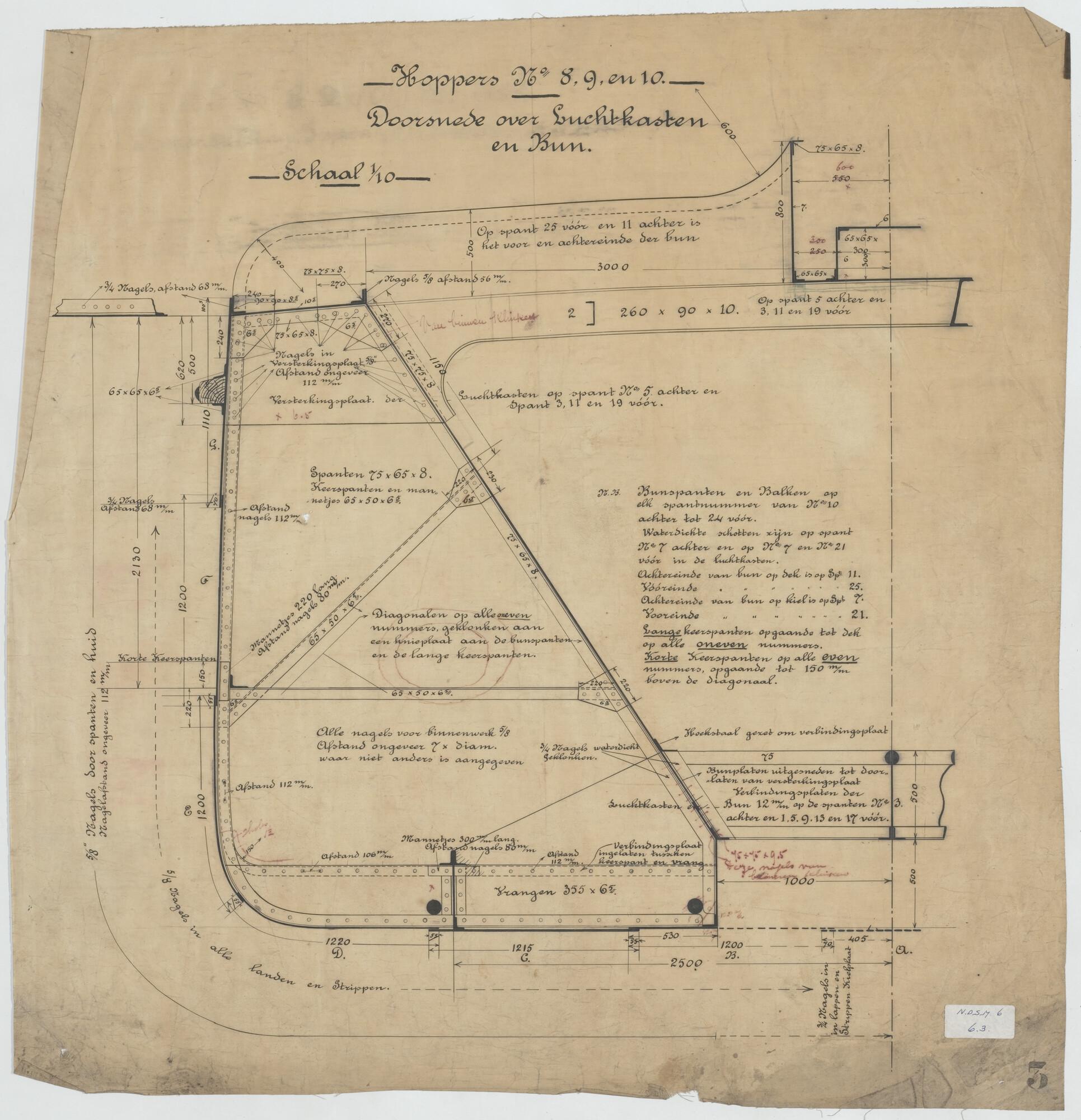 Stringerplan van de stoomsleepboot Batavia voor het ...