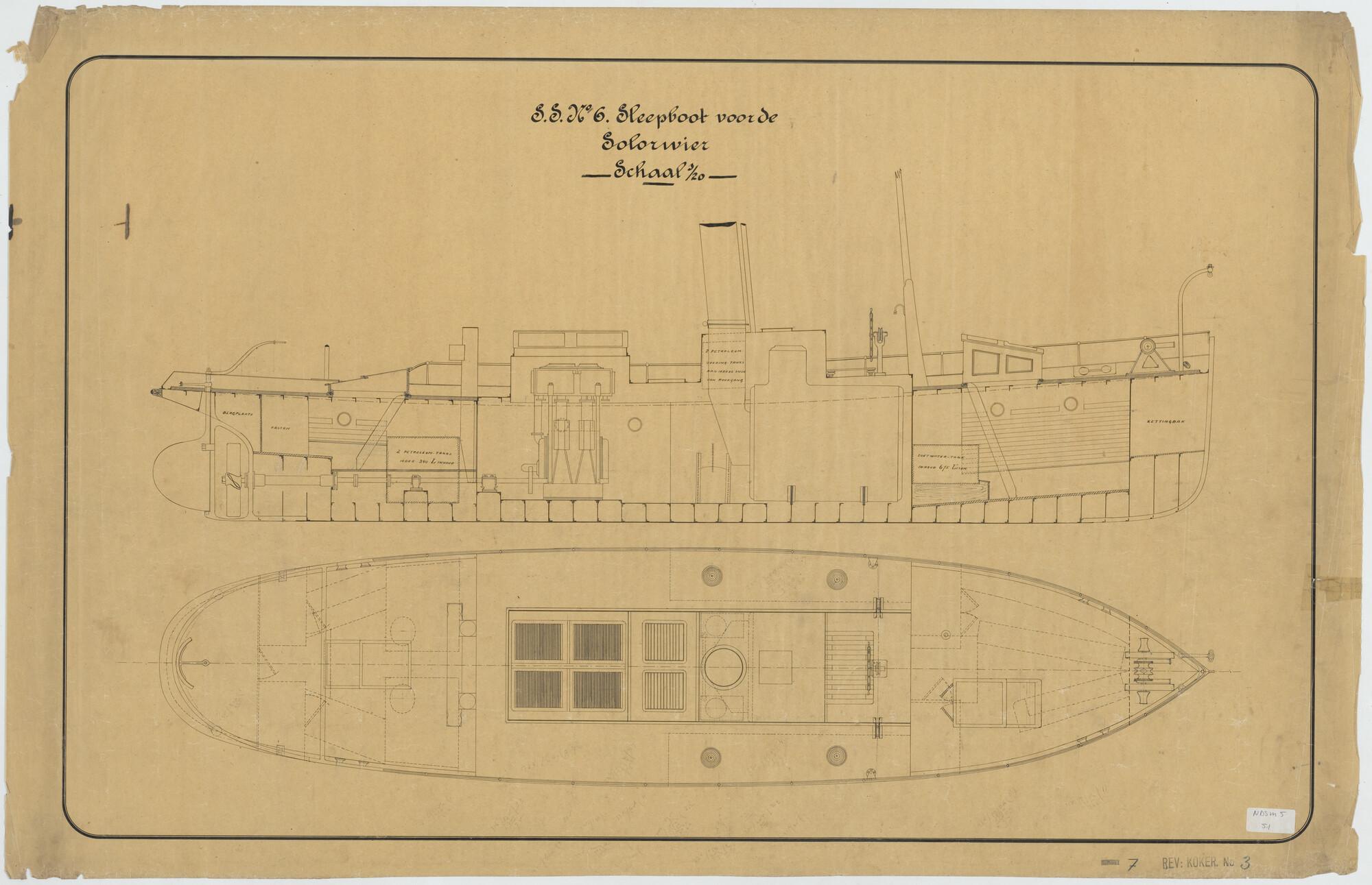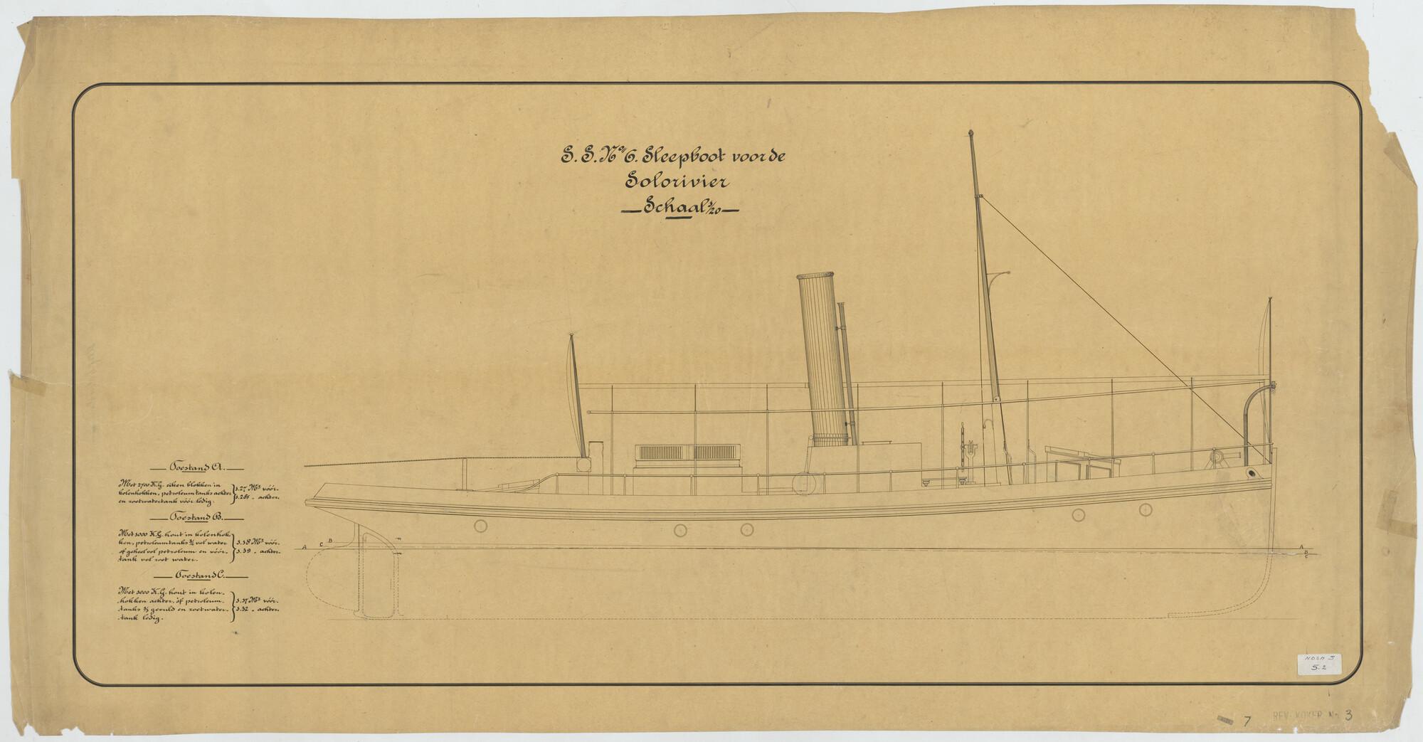 Algemeen plan van de stoomsleepboot Solorivier voor ...