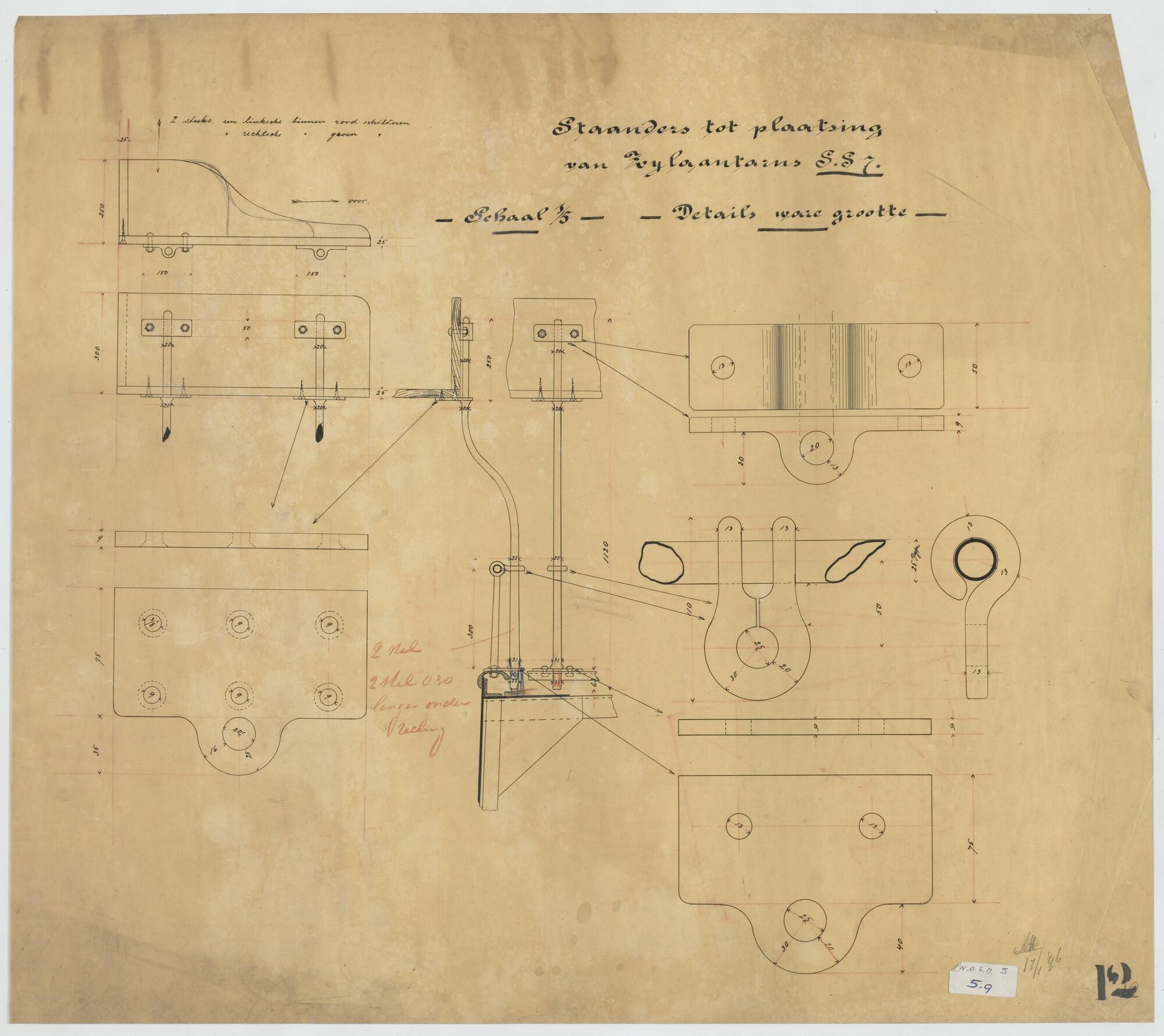 Staanders voor boordlichten van de stoomsleepboot So...