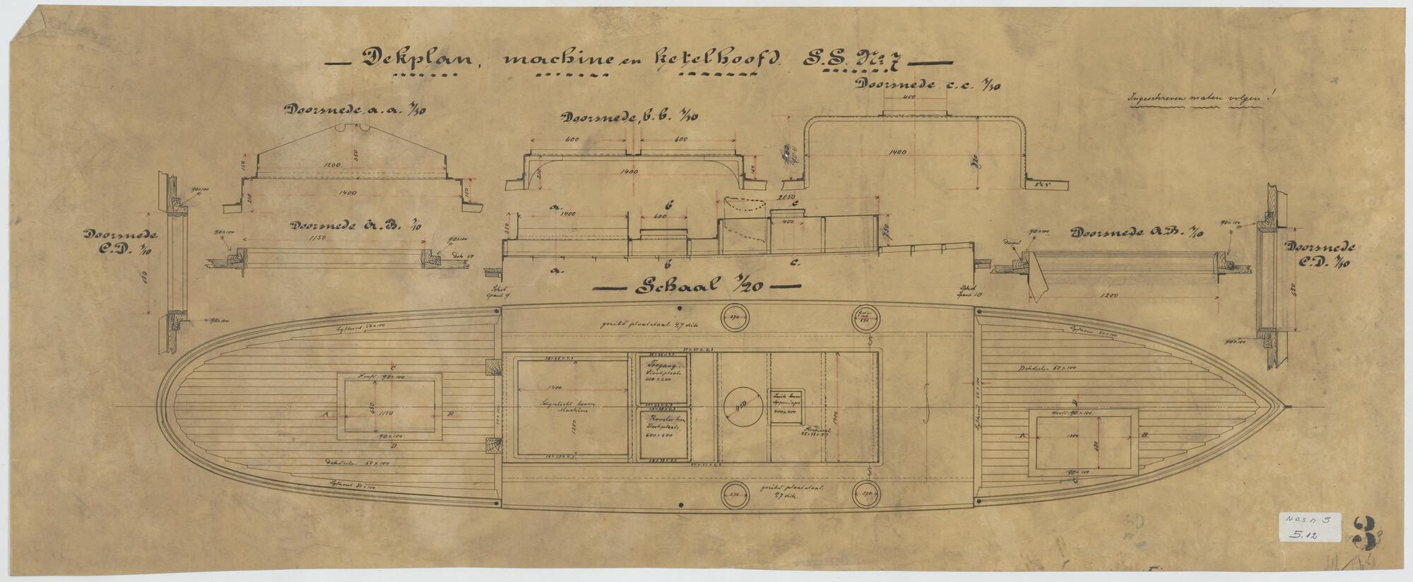 Dekplan van de stoomsleepboot 'Solorivier' voor het ...