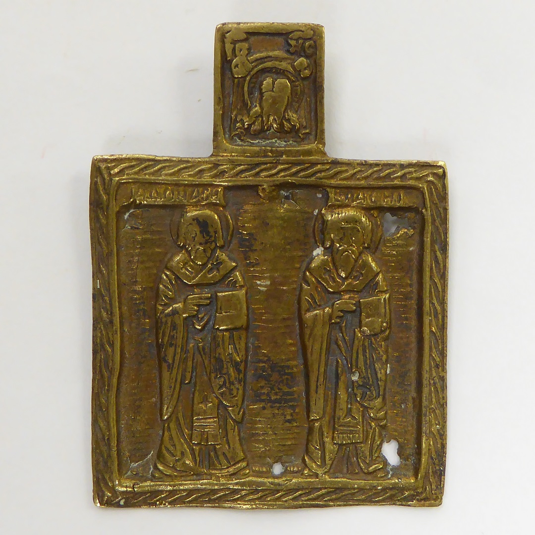 Reispateen met op de rand een gegraveerd kruis