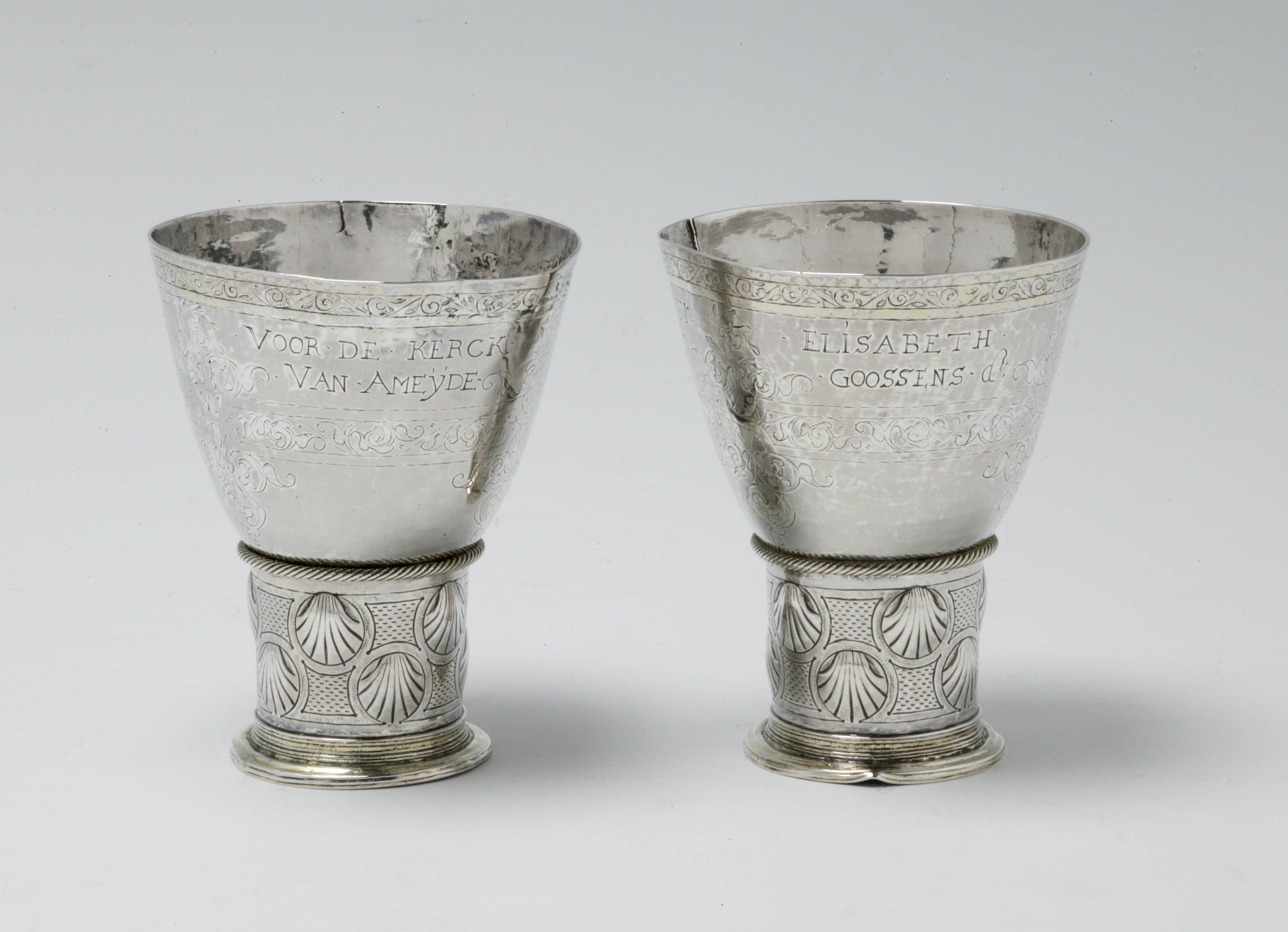 Zilveren avondmaalsbeker met "Voor de kerck van Amei...