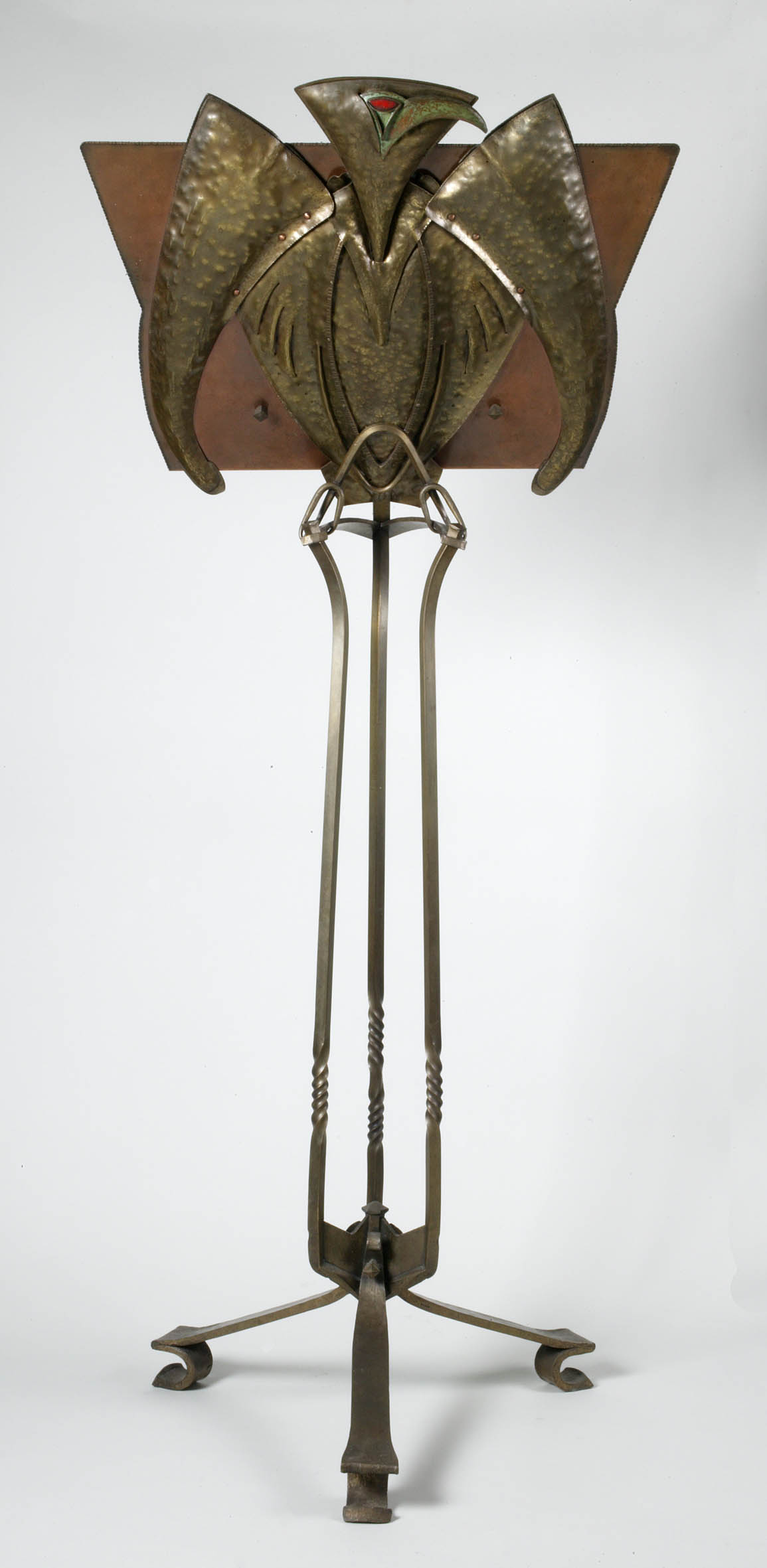 Wierookstelstandaard op ronde voet met krul waaraan ...