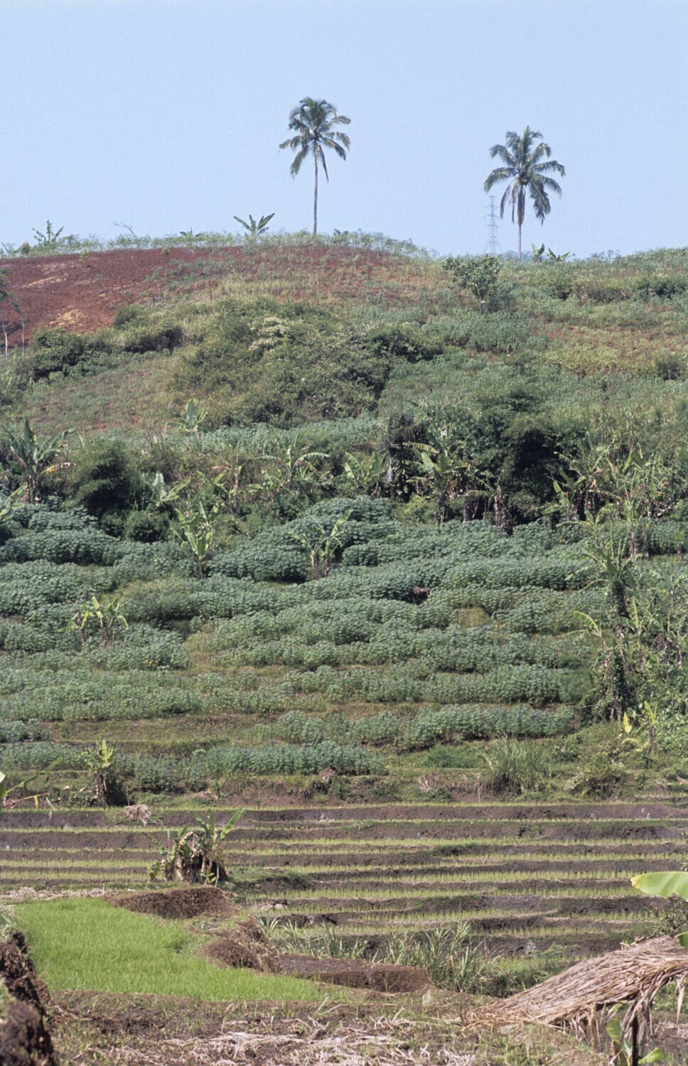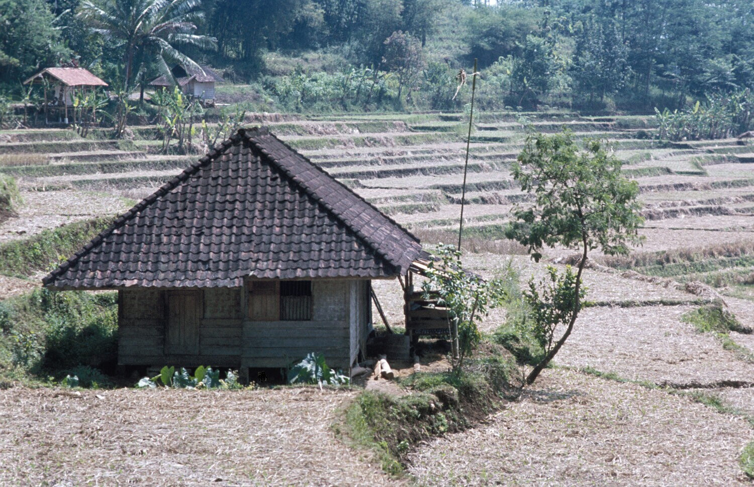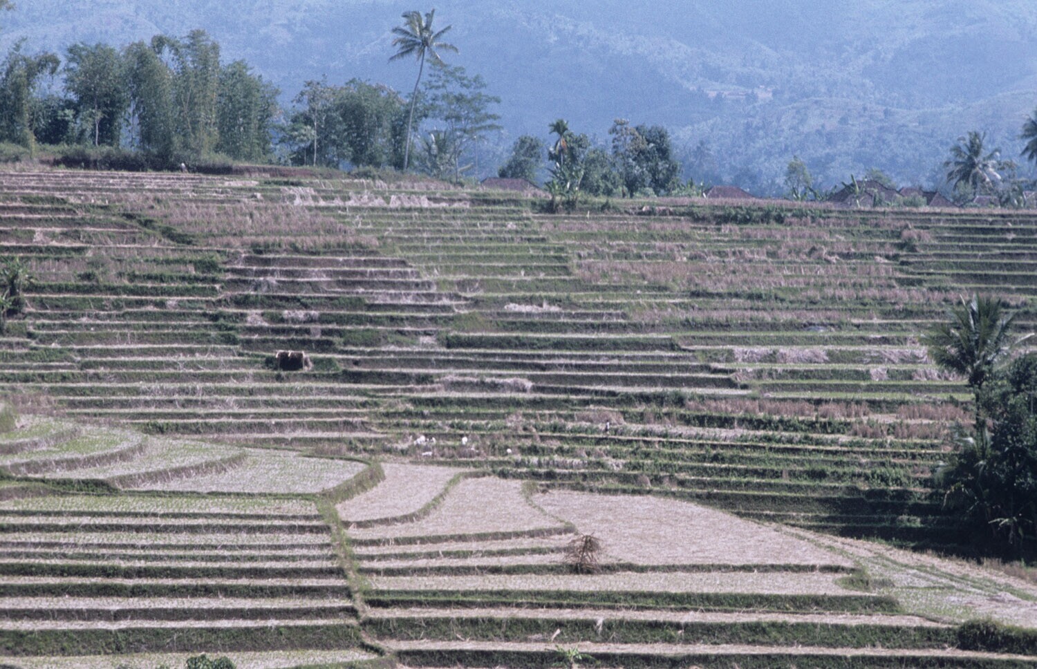 Afgeoogste rijstterrassen, omgeving Cililin, West-Java.