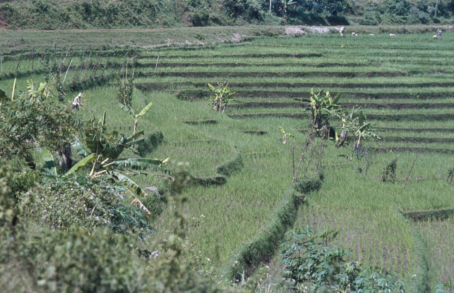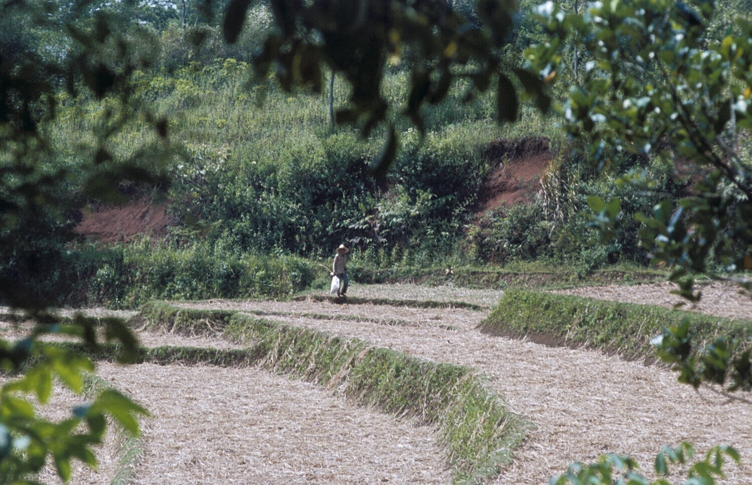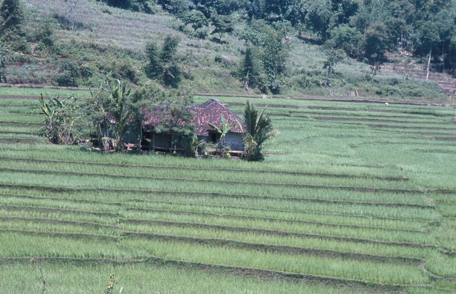 Afgeoogste rijstterrassen, omgeving Cililin, West-Java.