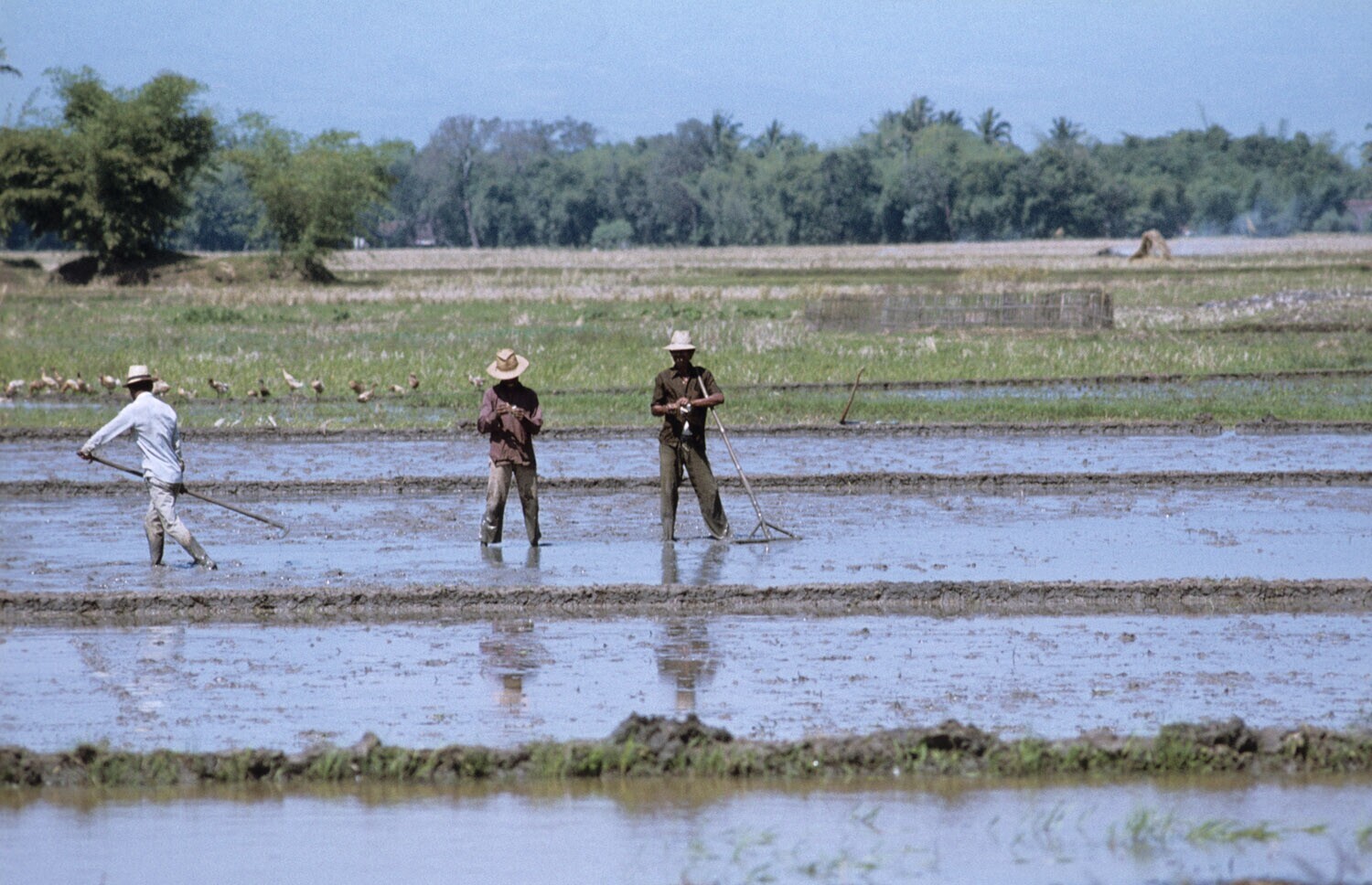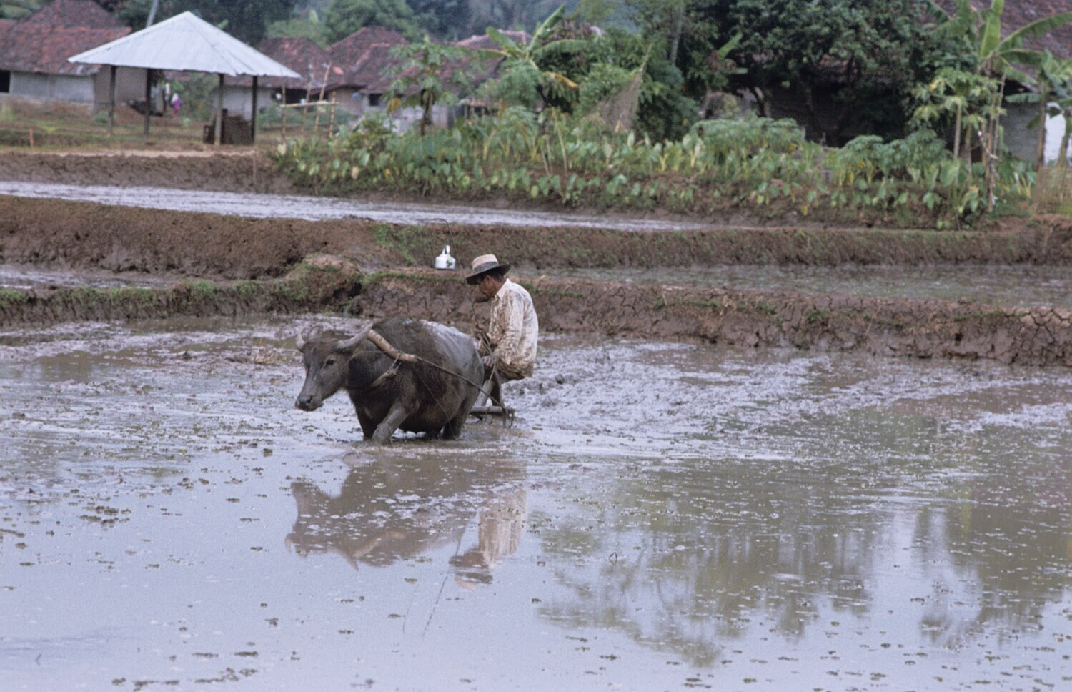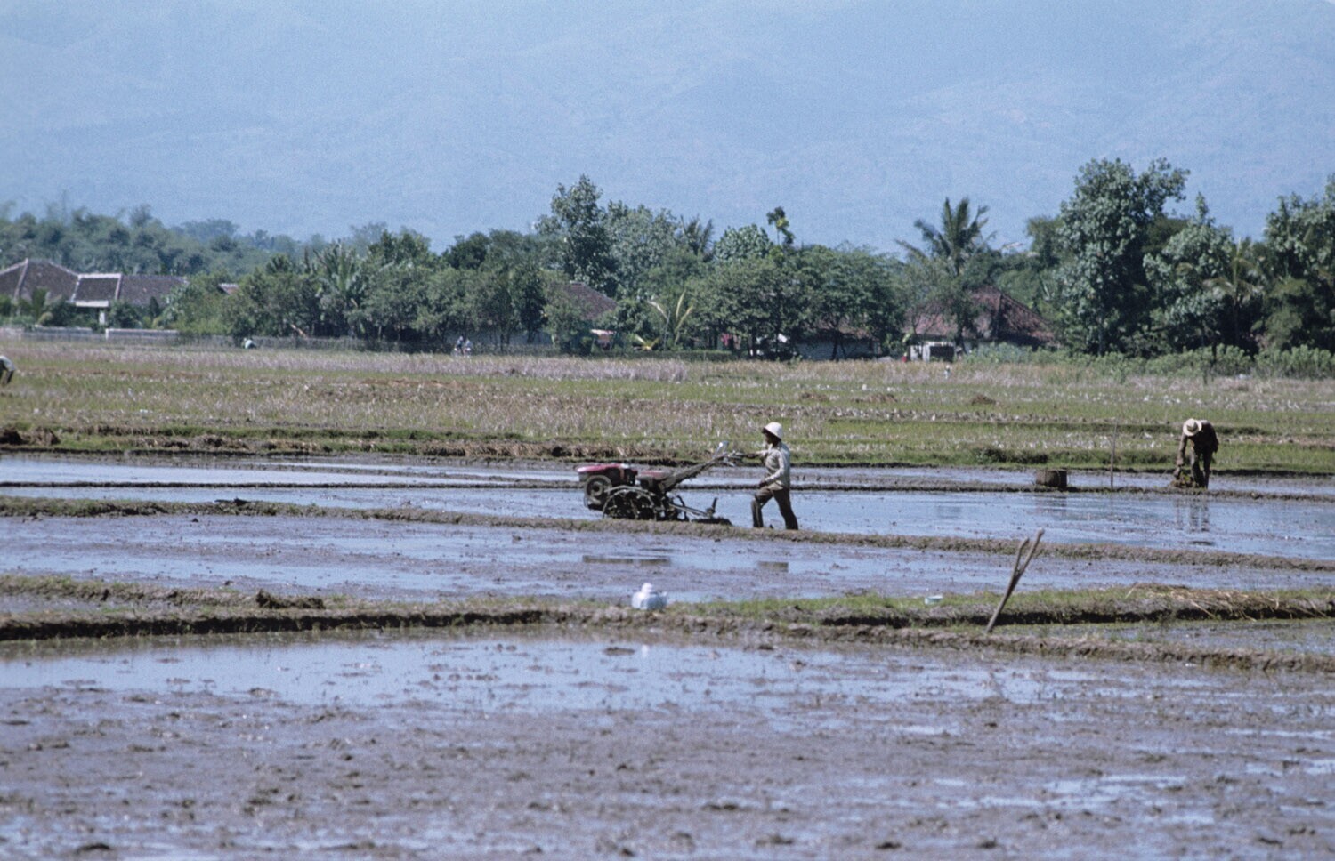 Het egaliseren van een rijstveld, omgeving Plered, W...