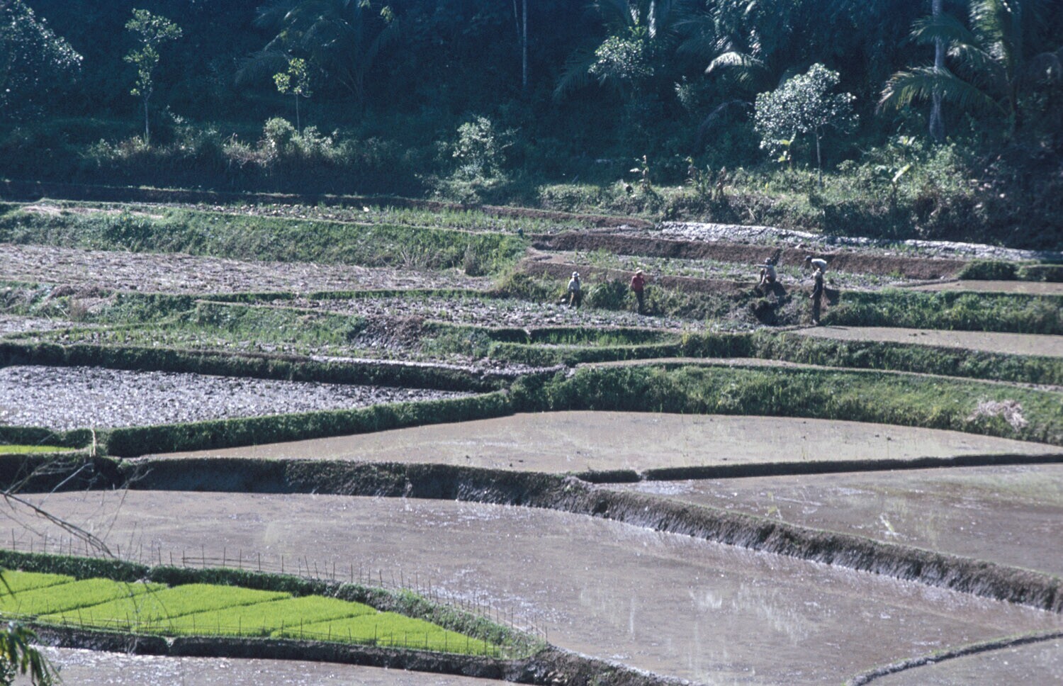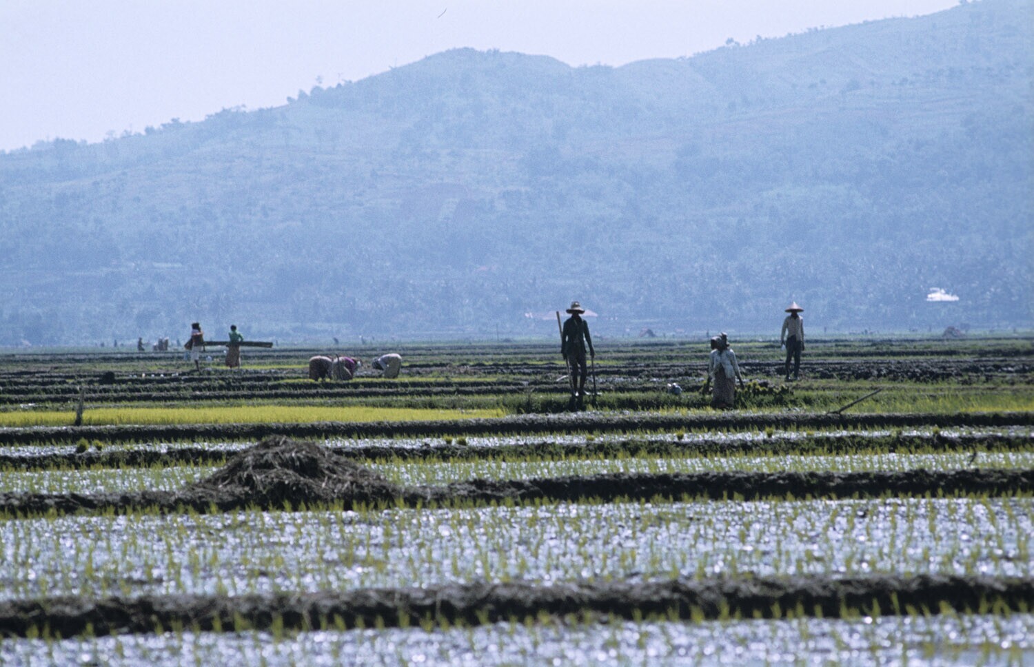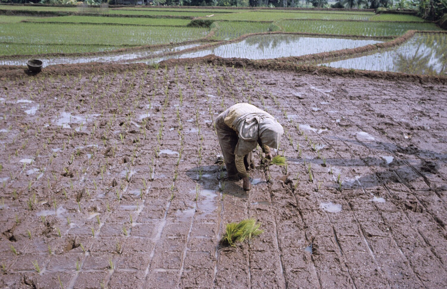 Het uitplanten van de jonge rijst (=bibit), Plered, ...