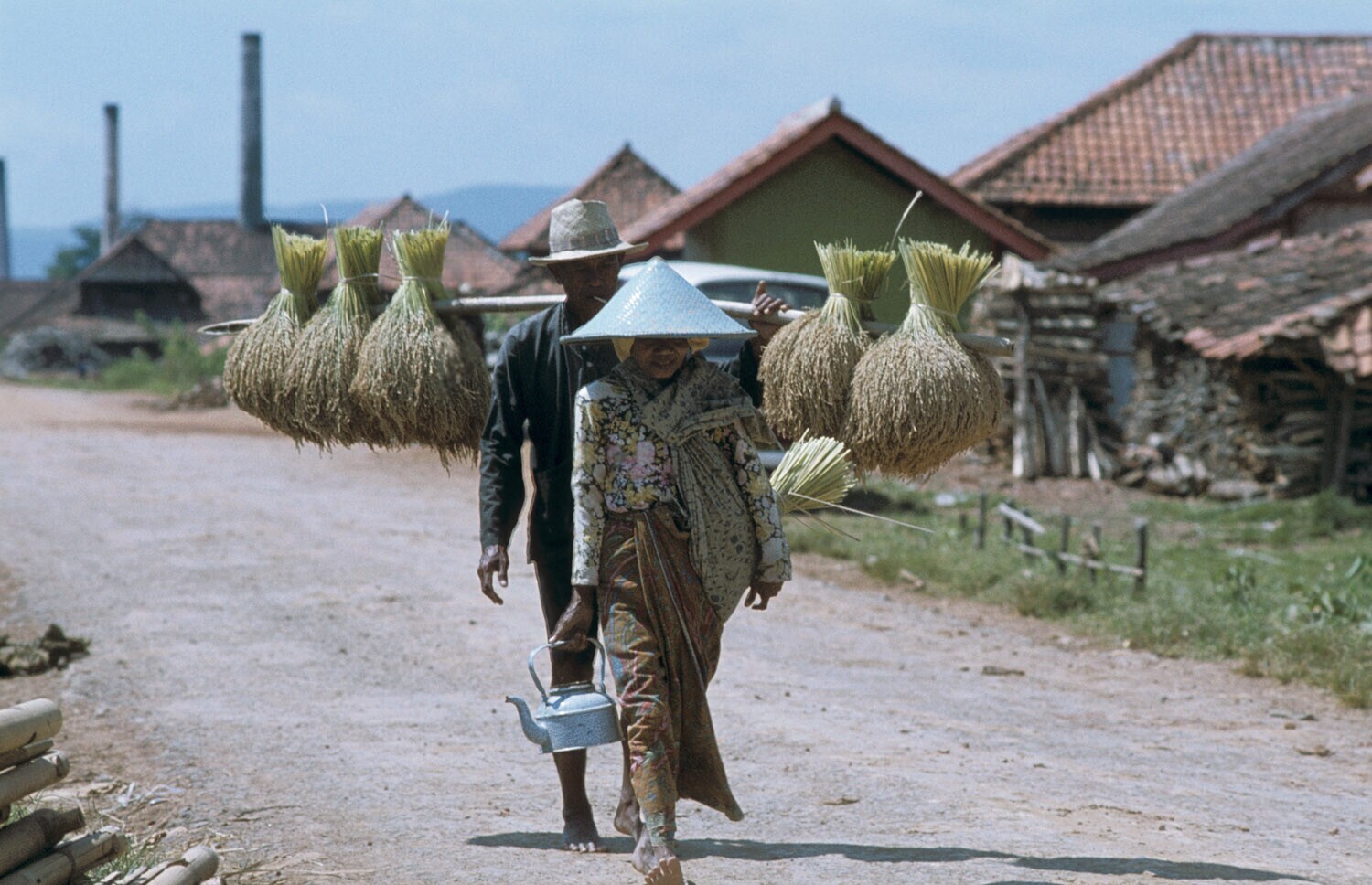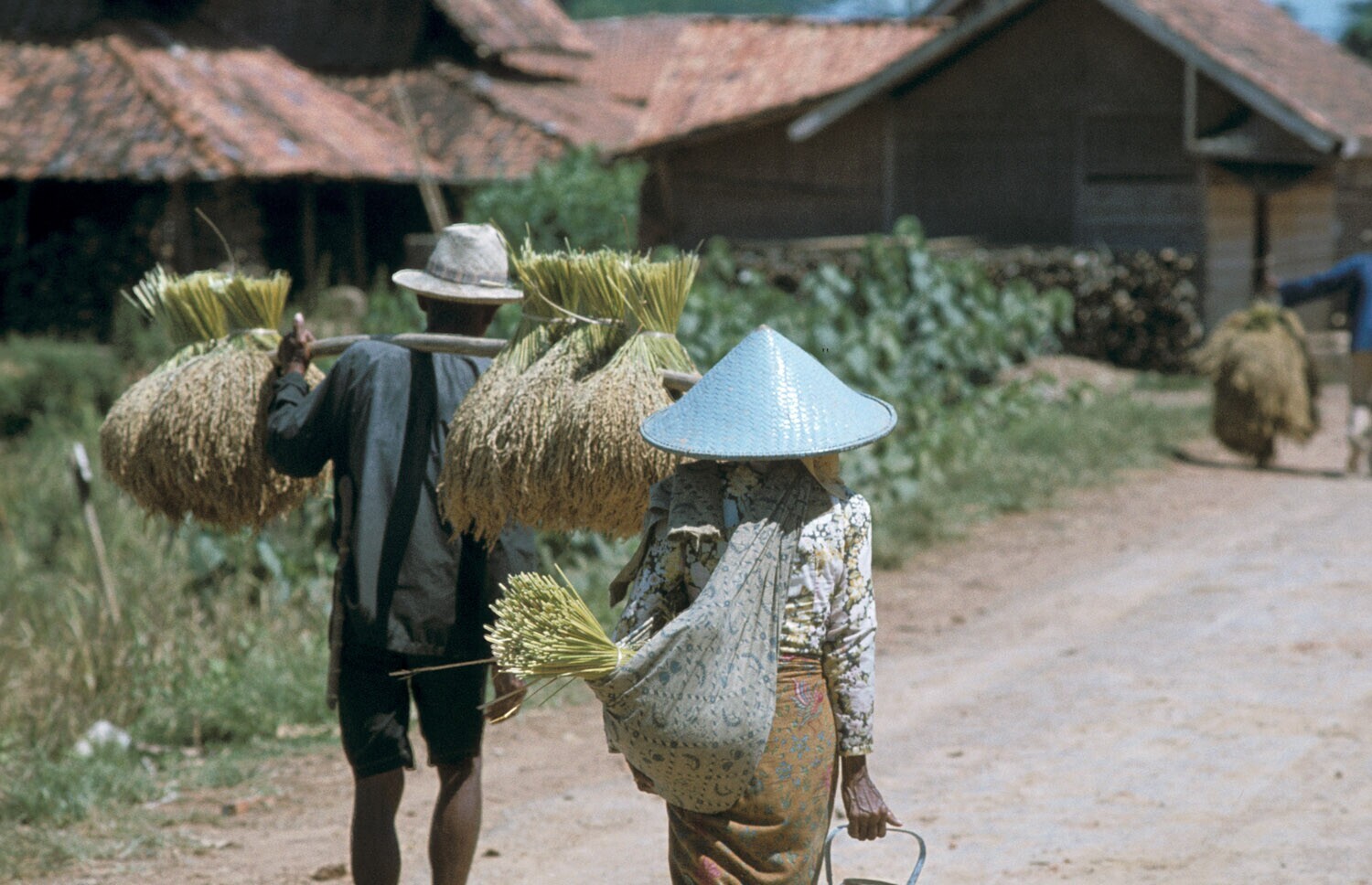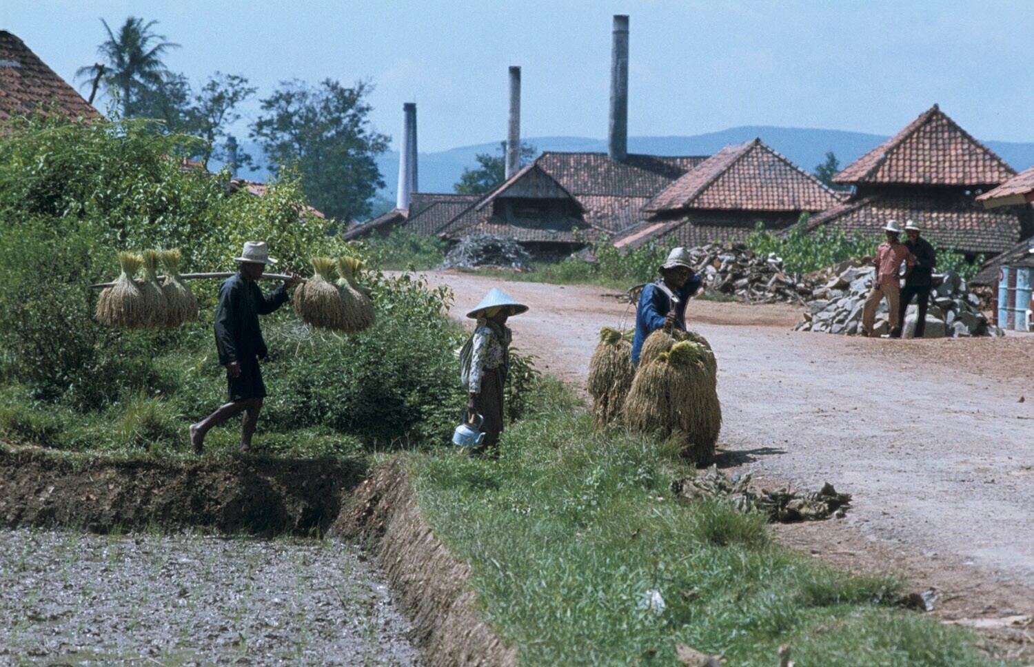 'Familie die met de rijstoogst huiswaarts keert. De ...