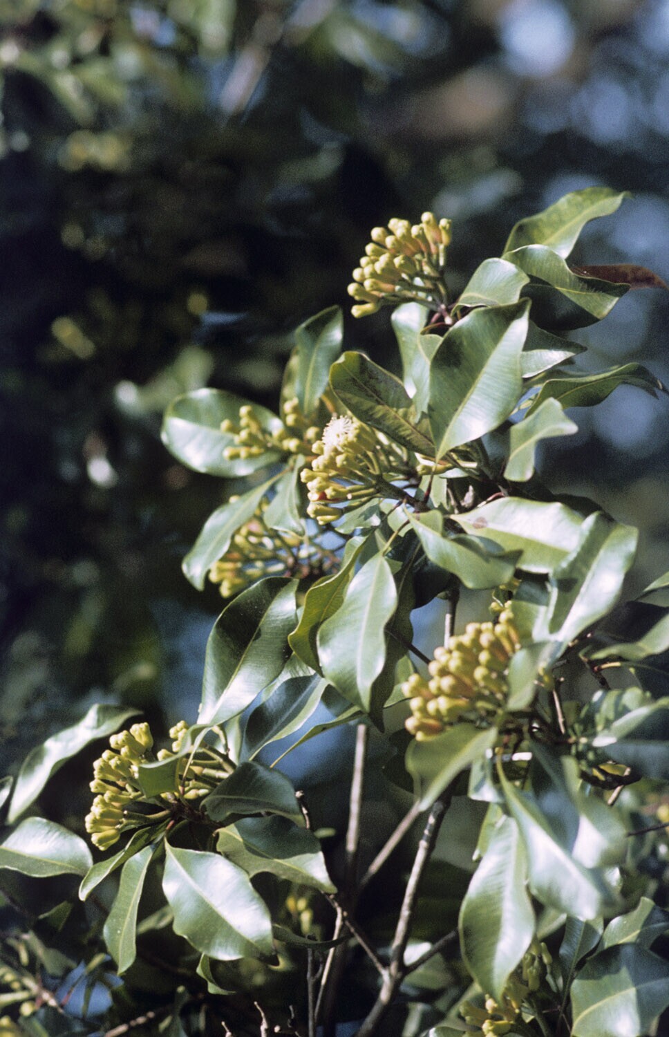 'Close-up van kruidnagelknoppen aan de boom; tuin te...
