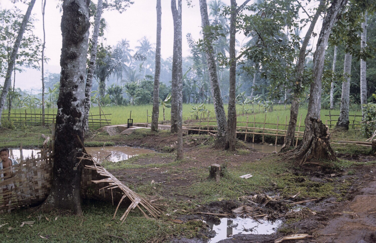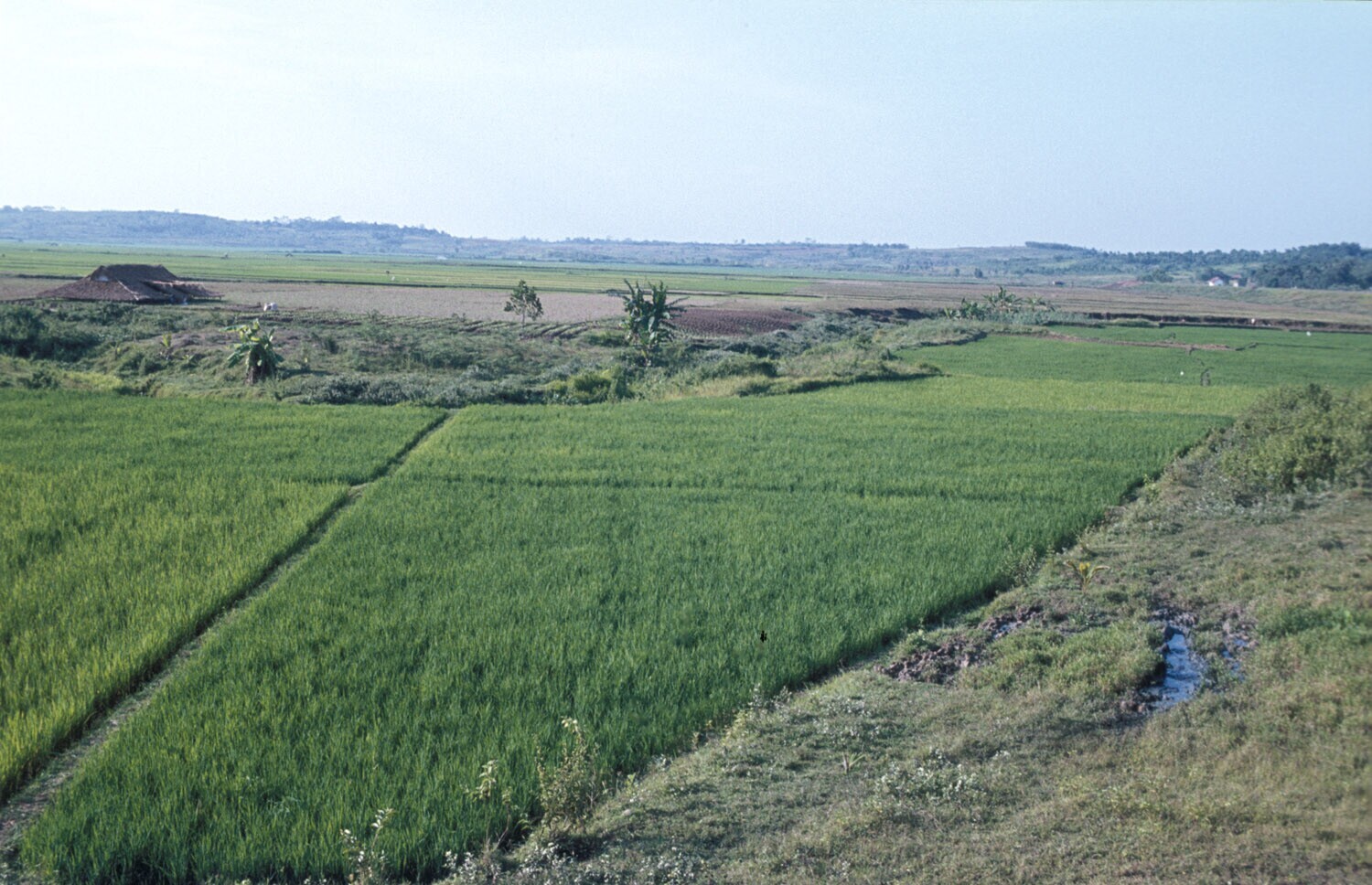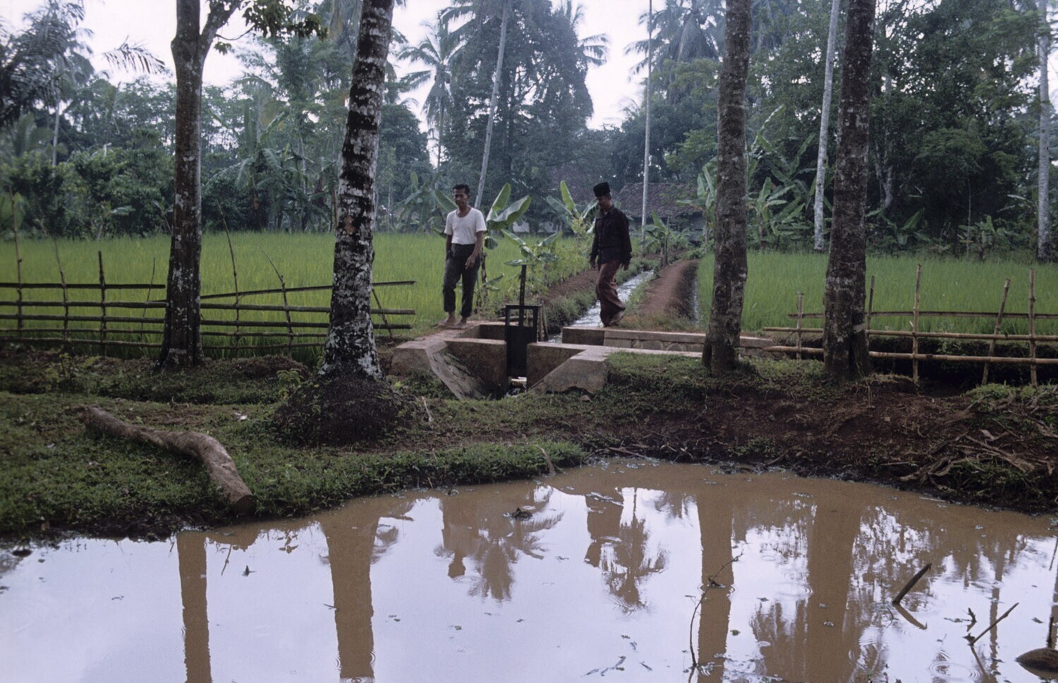 Rijstvelden in het Krawangse. Bevloeiing onder de da...