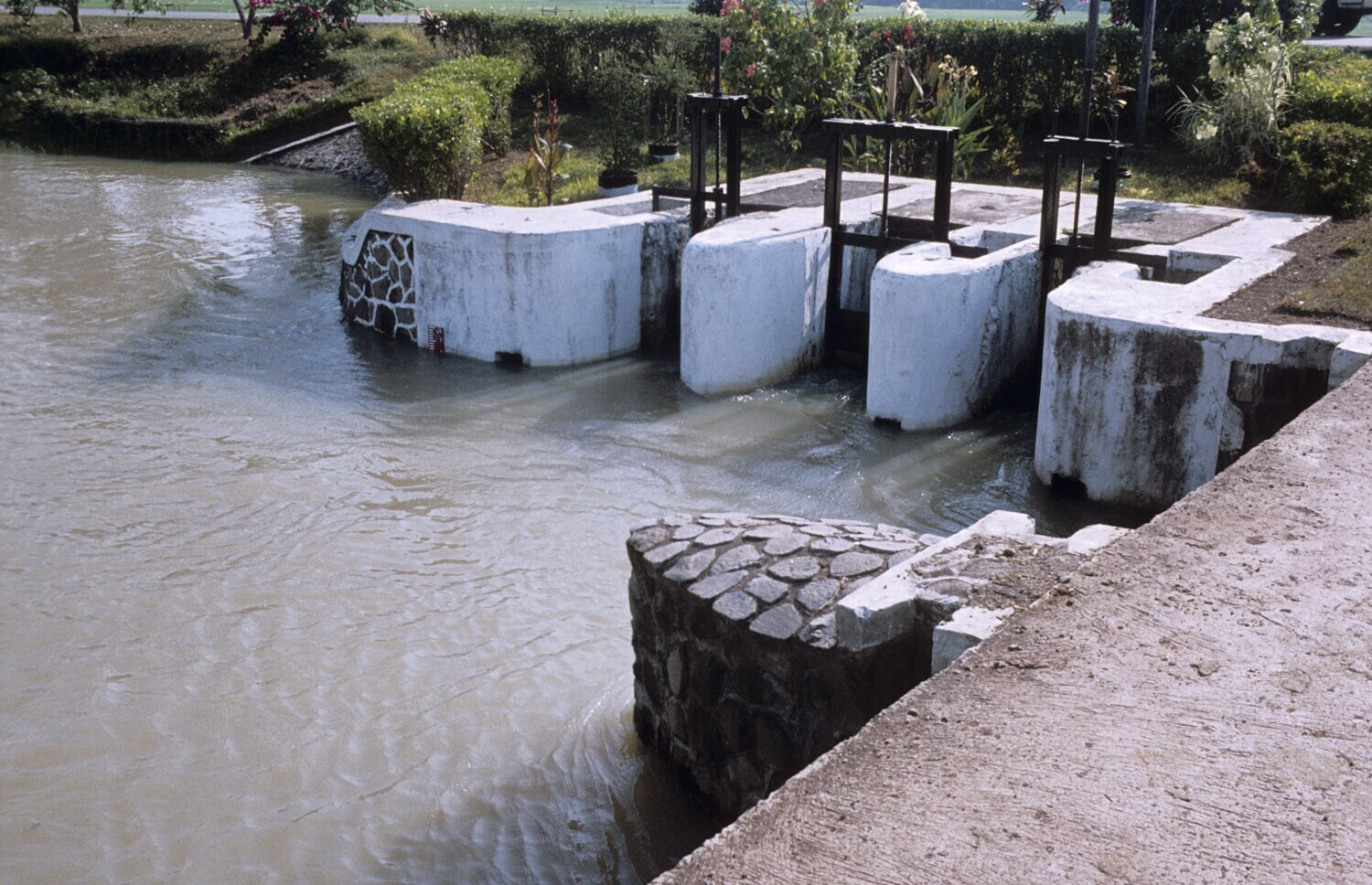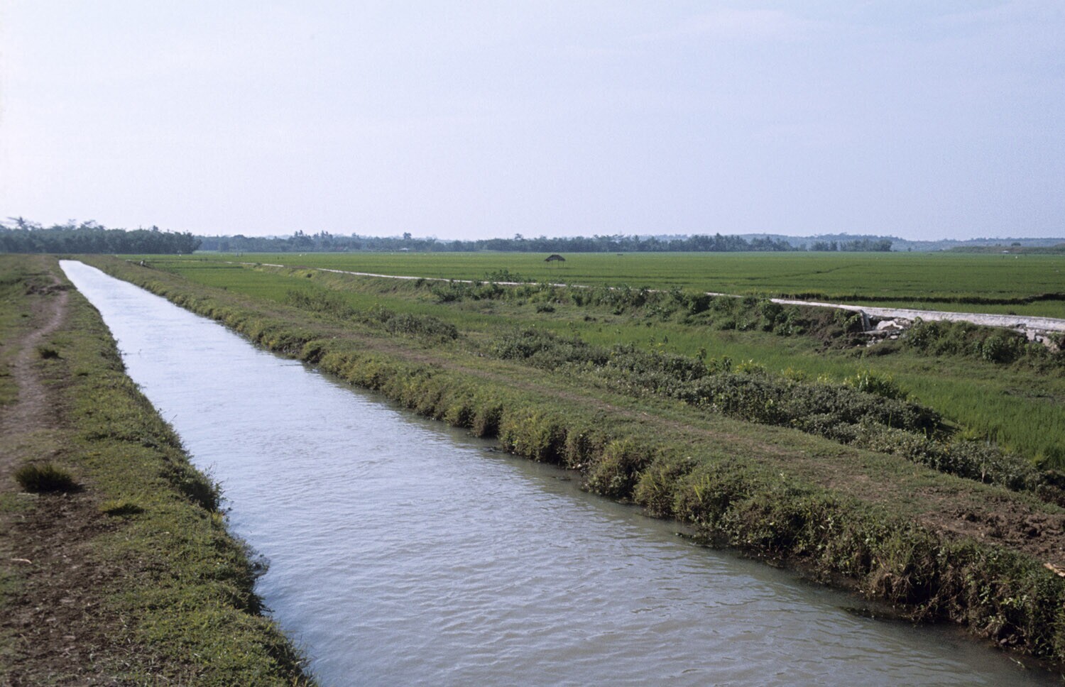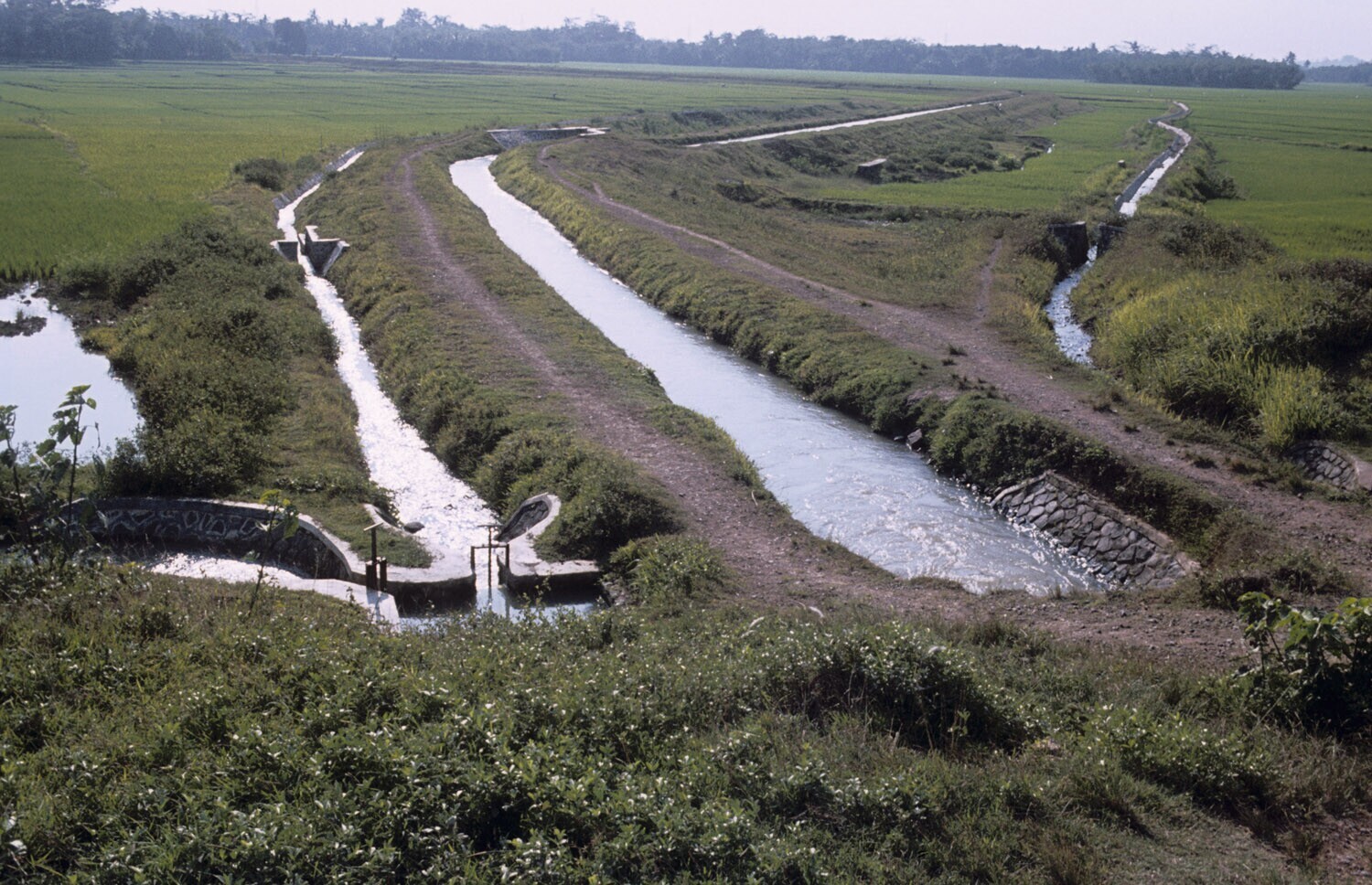 Bevloeiingskanaal onder de dam van Jatiluhur in het ...