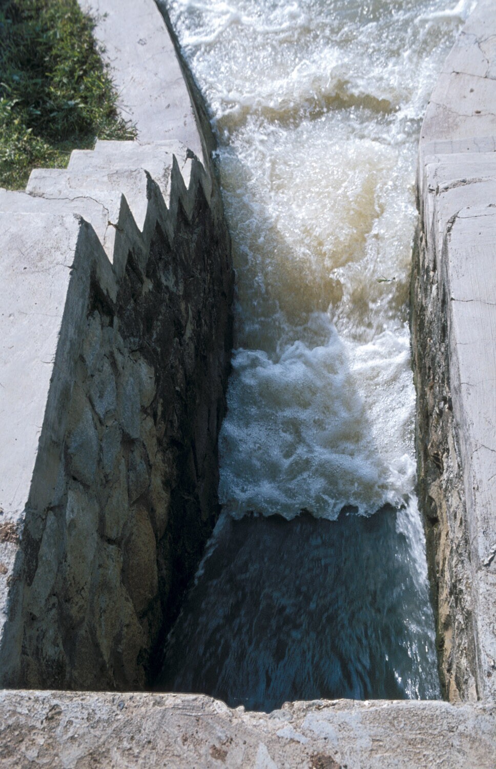 Woelkom in het bevloeiingskanaal, onder de dam van J...
