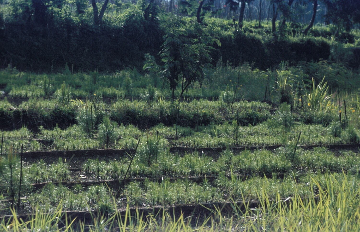 De kweekbedden op de pinus (=den) aanplant, te Bandu...
