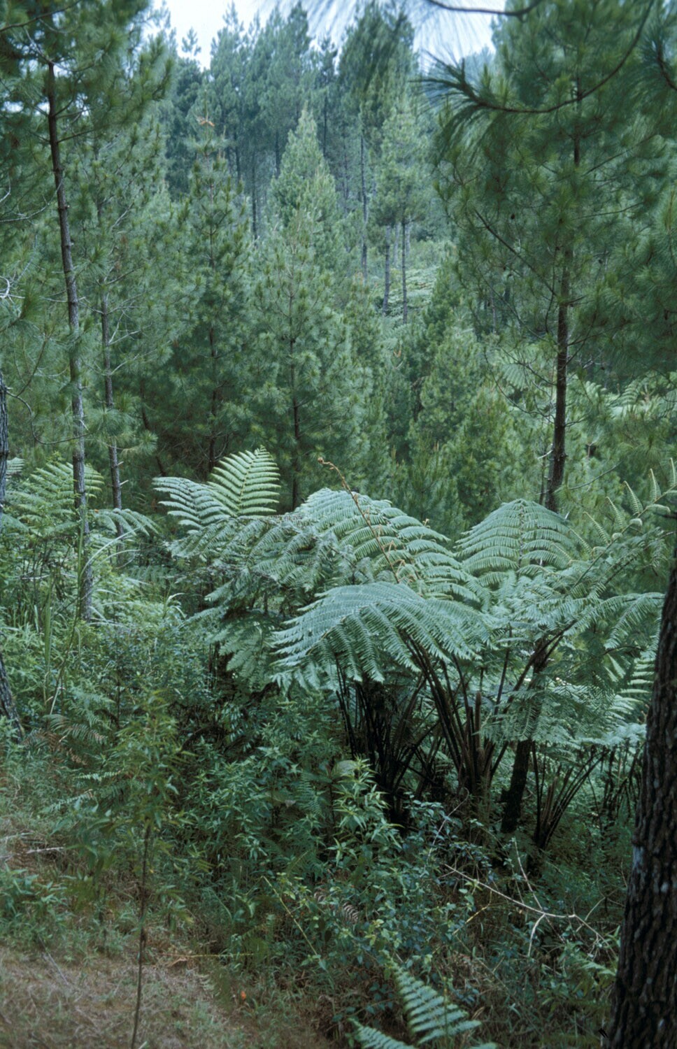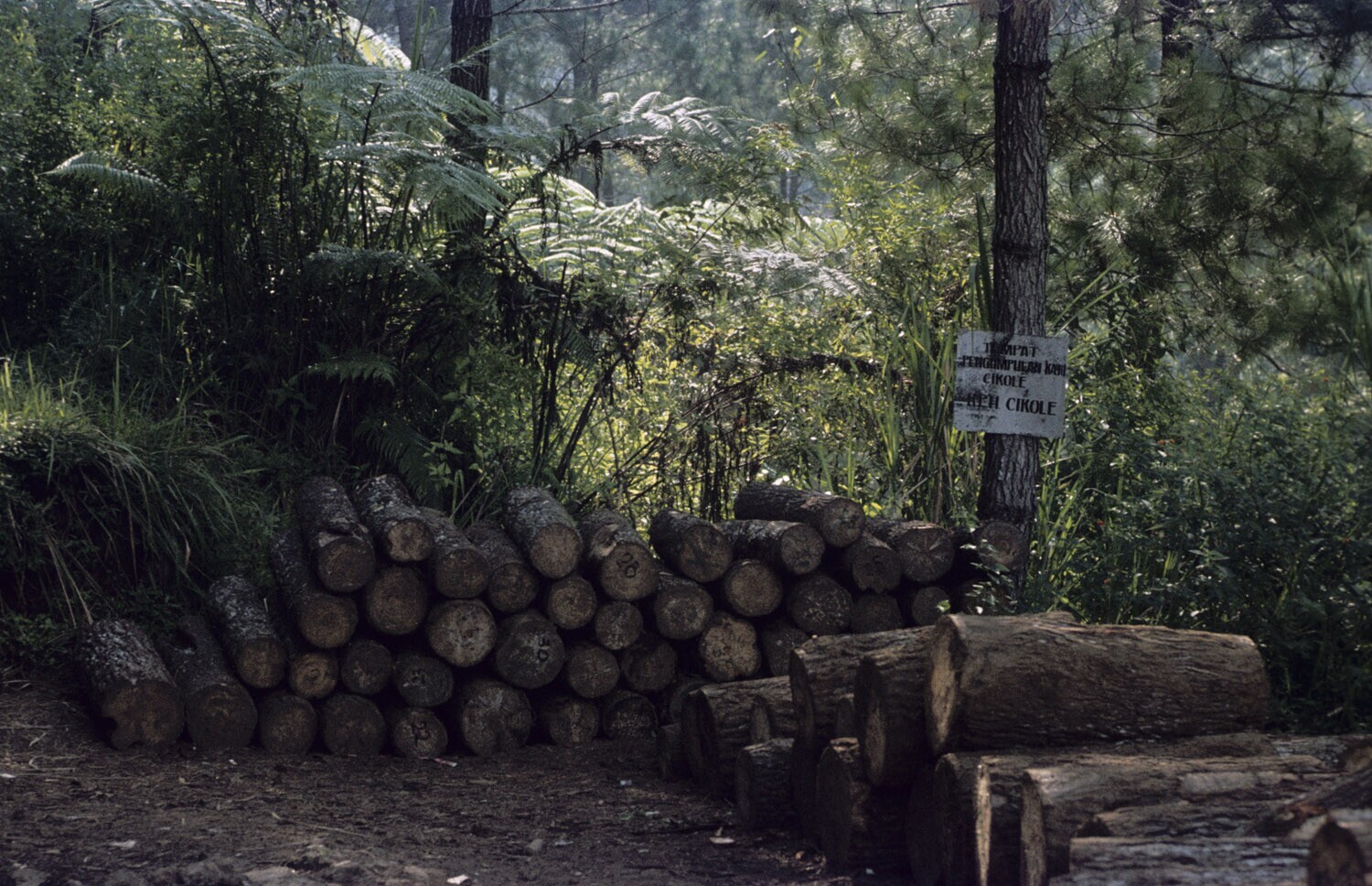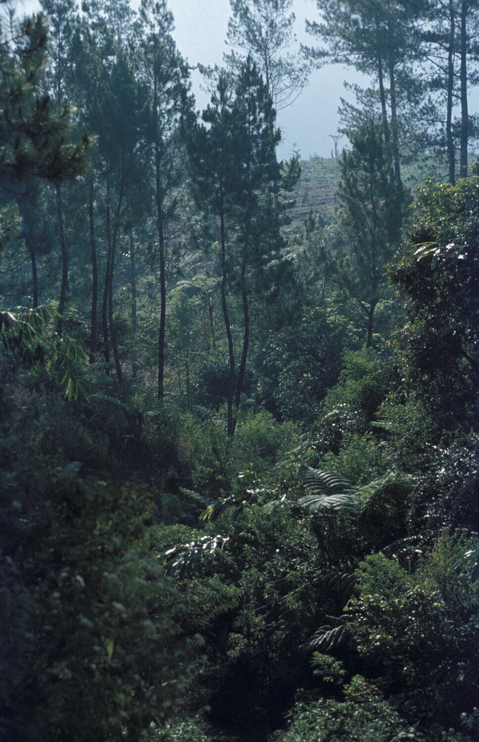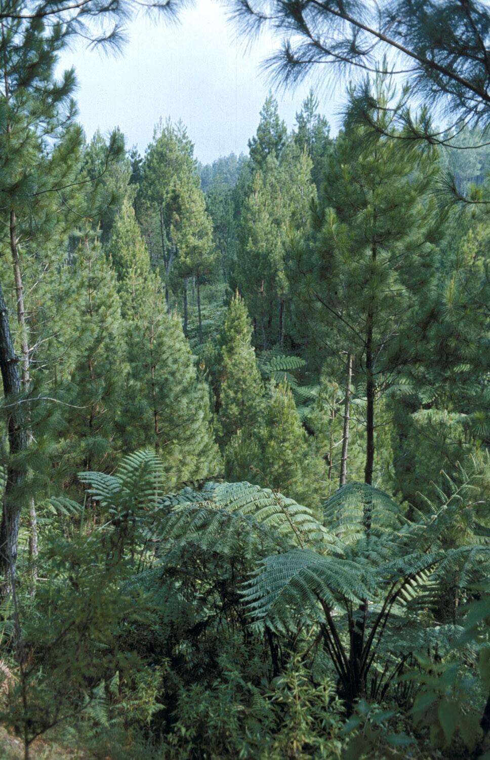 Pinus (=den) aanplant, te Bandung, West-Java.