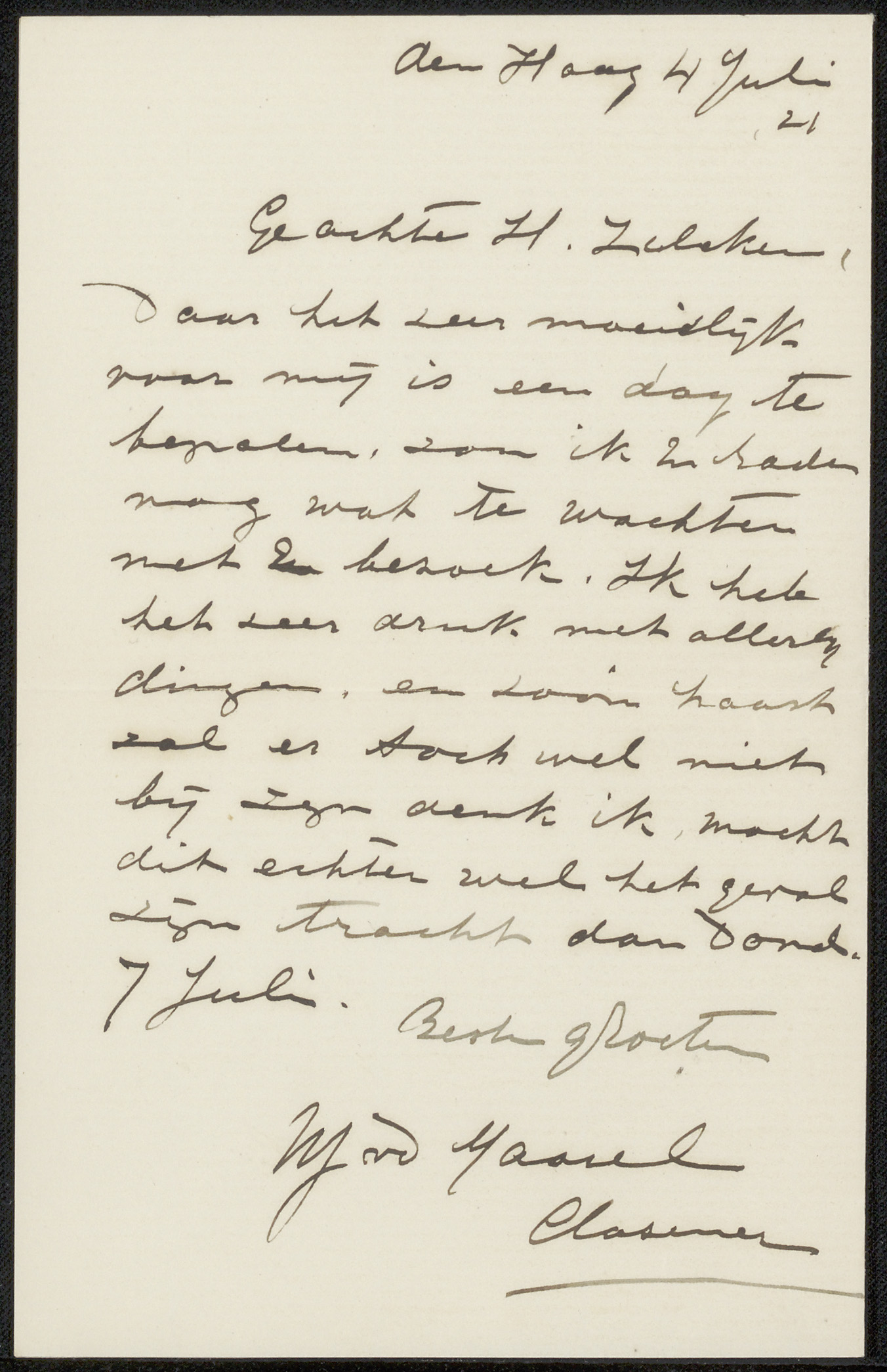 Brief aan Philip Zilcken