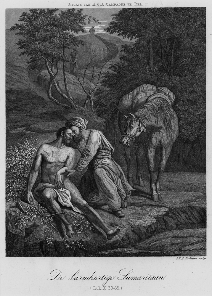 Gravure, voorstellende de Barmhartige Samaritaan, ve...