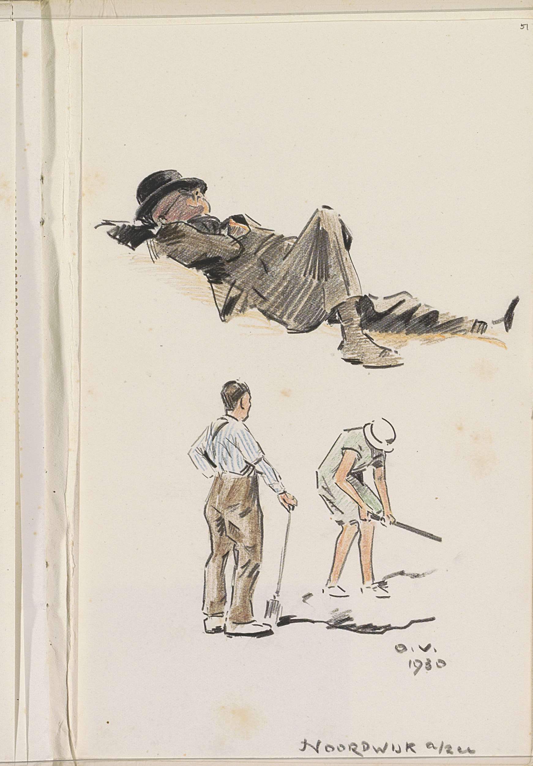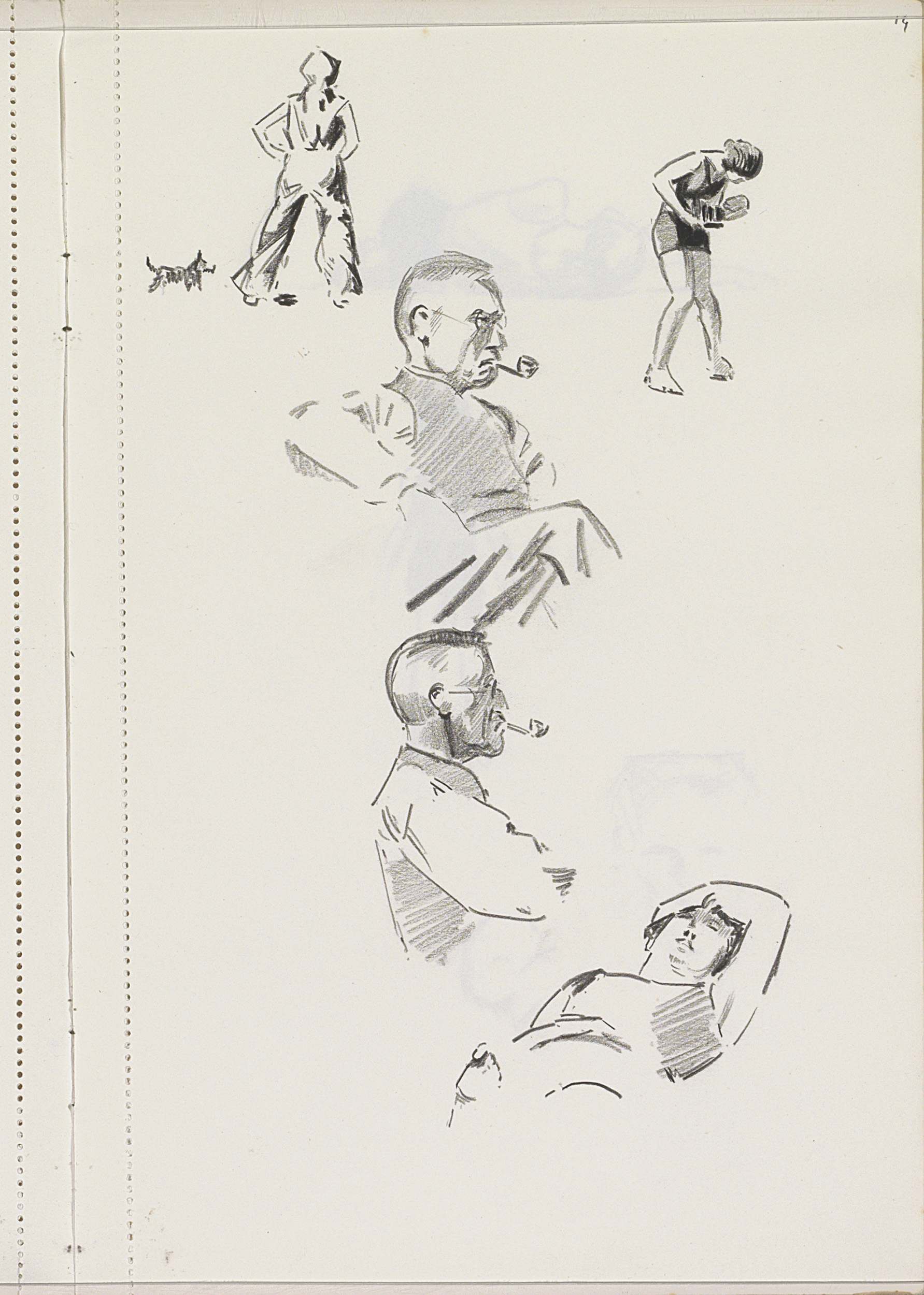 Figuurstudies, onder andere een man met een pijp