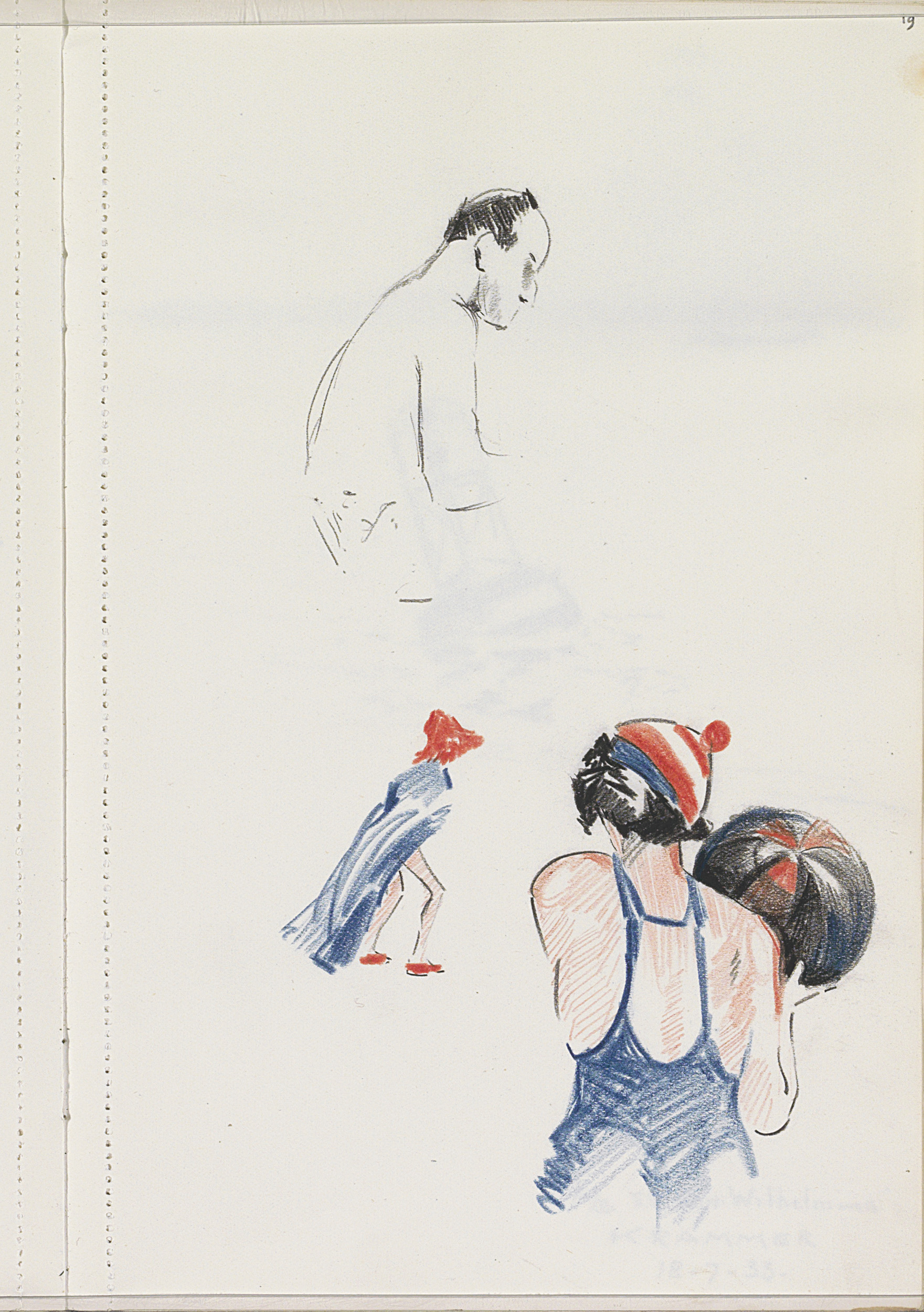Liggende figuur en een kind in zwemkleding