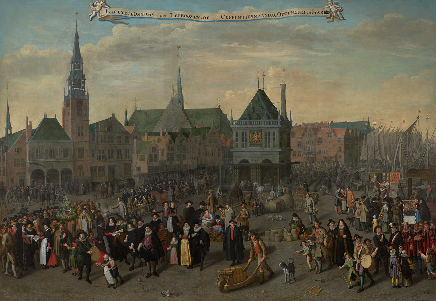 De Dam in 1604 tijdens de laatste Leprozenommegang o...