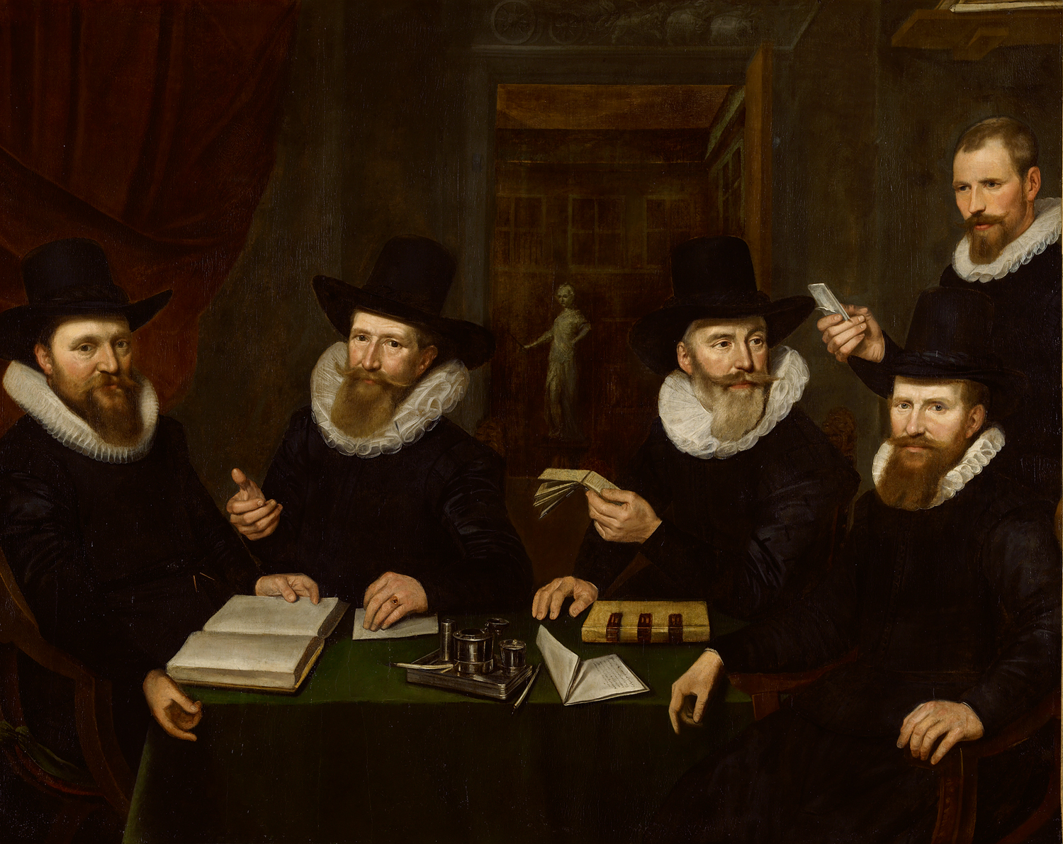 Vier regenten en een functionaris van het Rasphuis