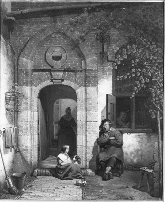 Een binnenplaats, gestoffeerd met beeldjes