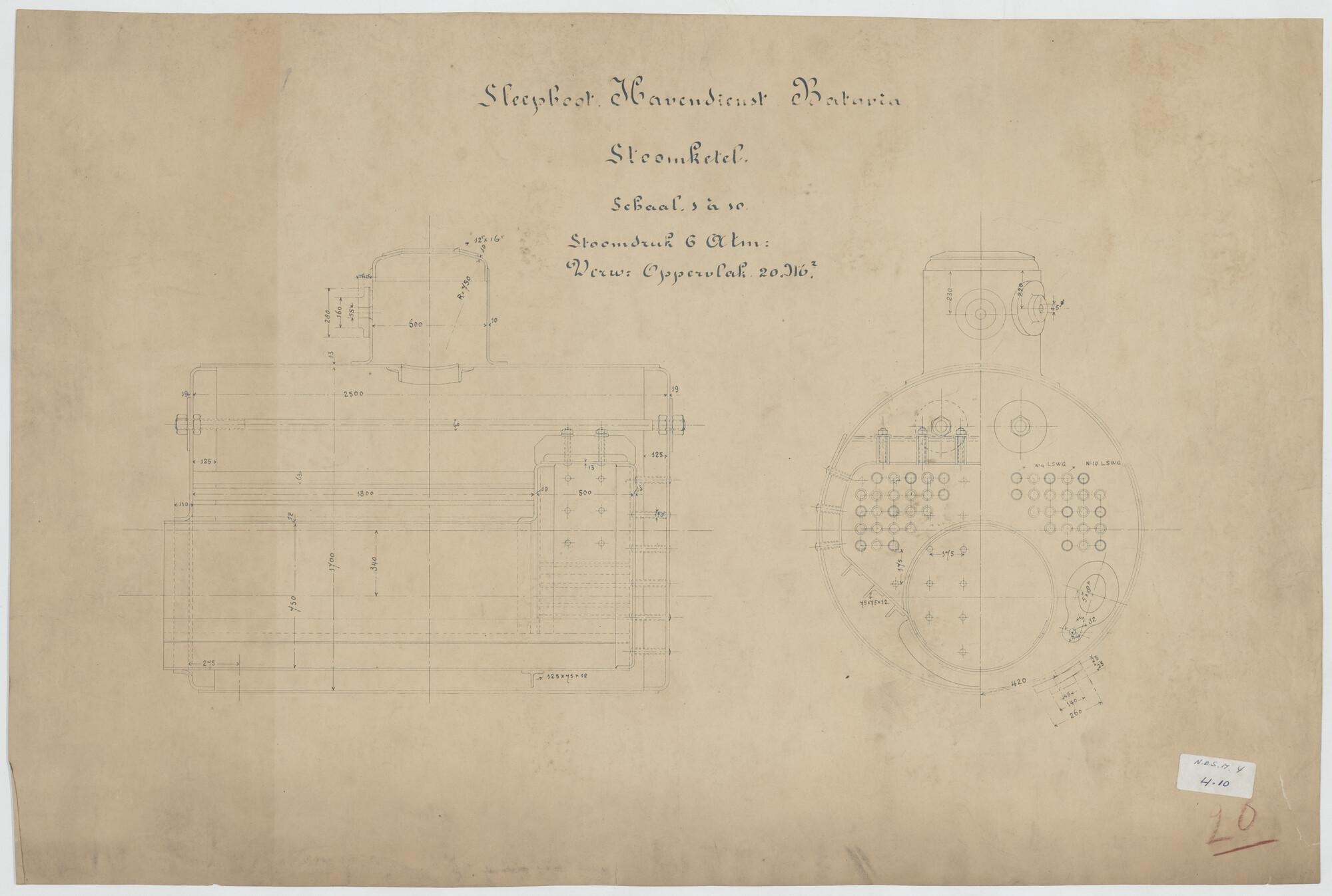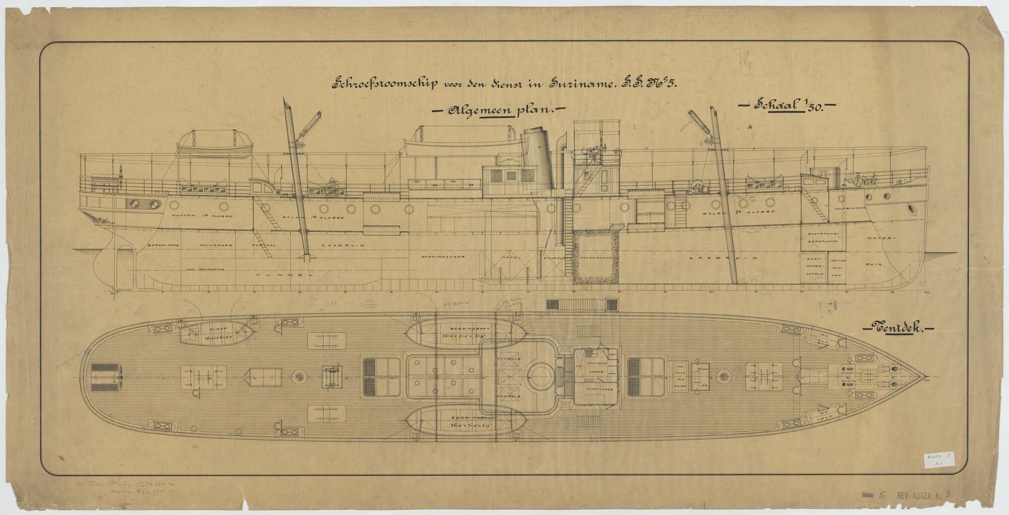 Algemeen plan van de stoomsleepboot Batavia voor het...