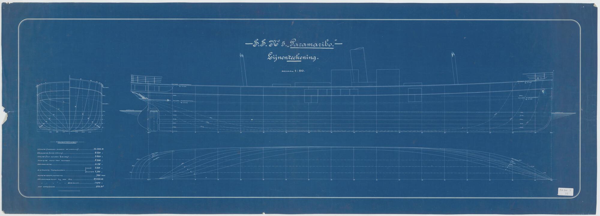 Lijnentekening van vracht- en passagiersschip ss. Pa...