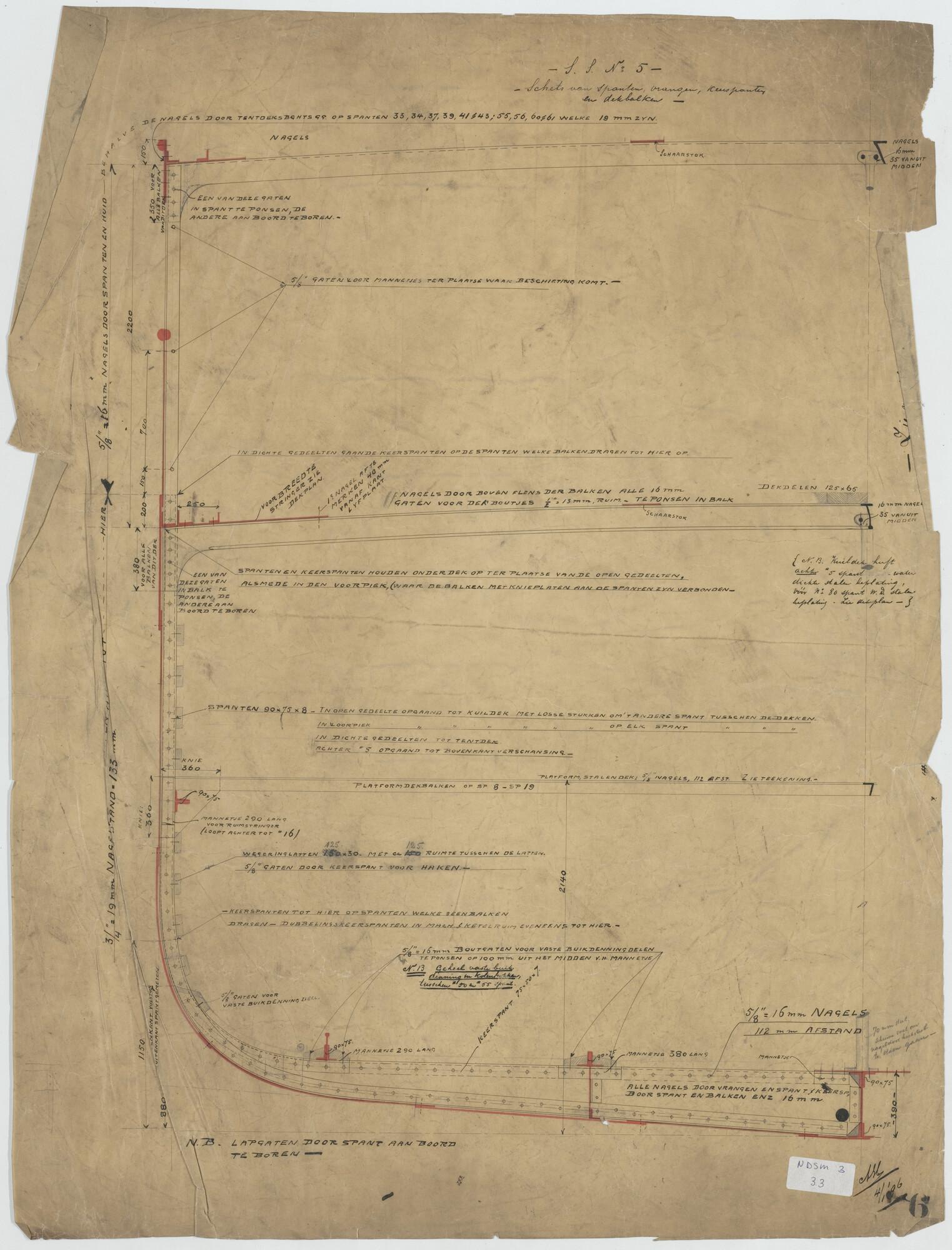 Spantenschets van vracht- en passagiersschip ss. Par...