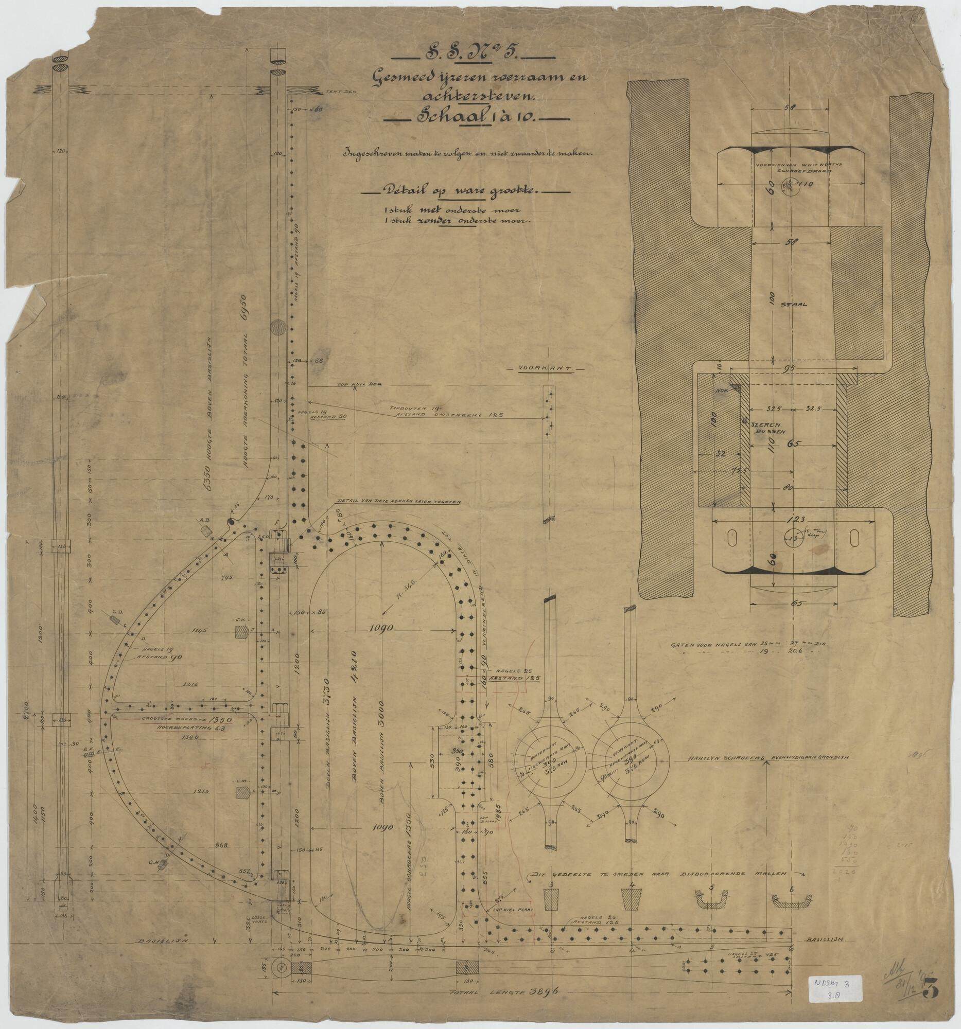 Spantenraam van de stoomsleepboot 'Batavia' voor het...