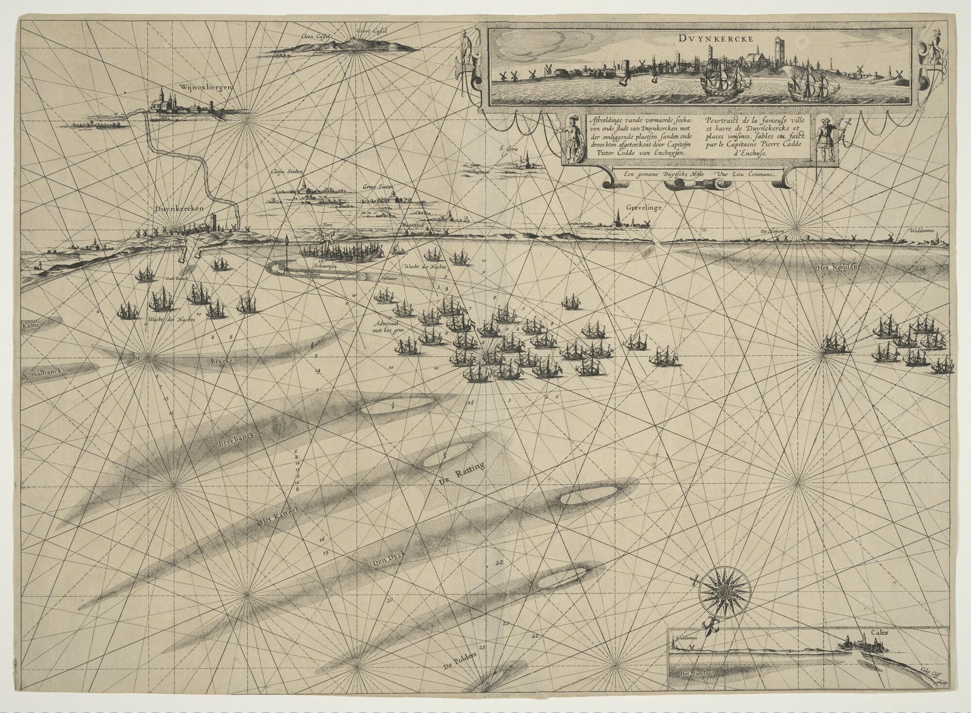 Kaart en aanzicht van Duinkerken, Calais en omliggen...