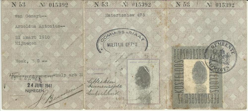Persoonsbewijs op naam van Van Gemert, Arnoldus Anto...