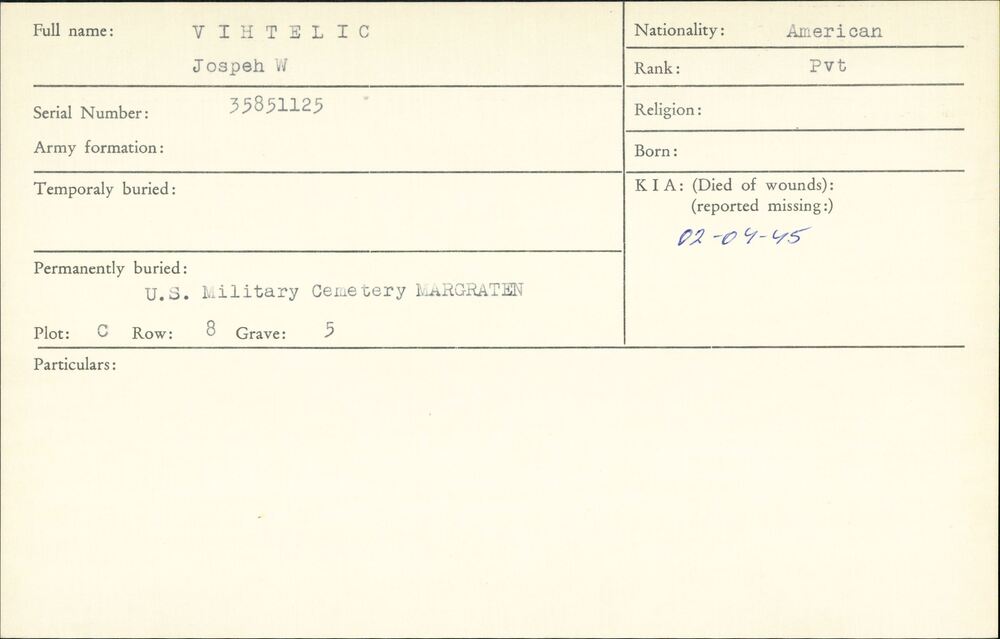 Oorlogsgraven comité kaarten Achternamen V
