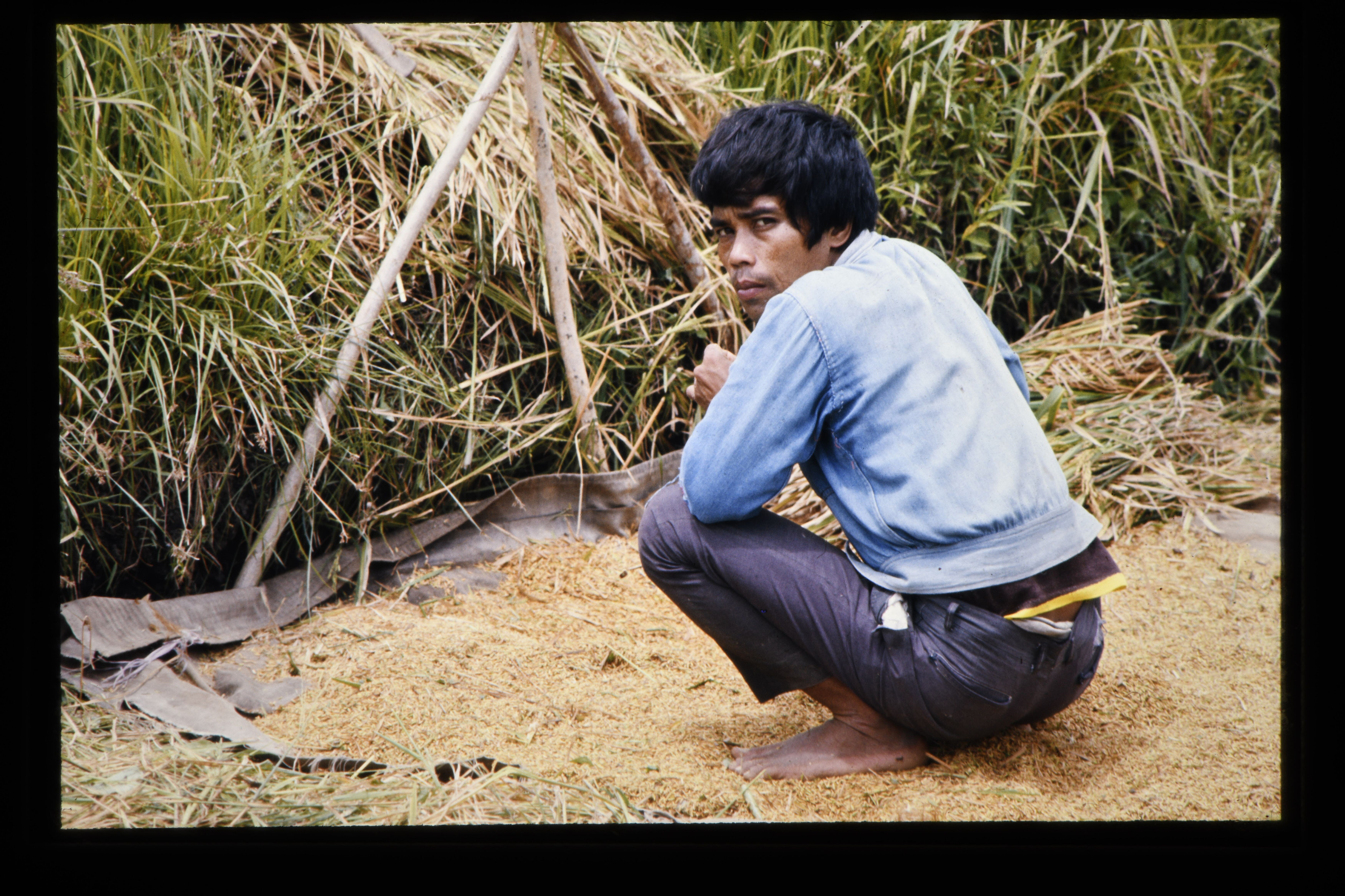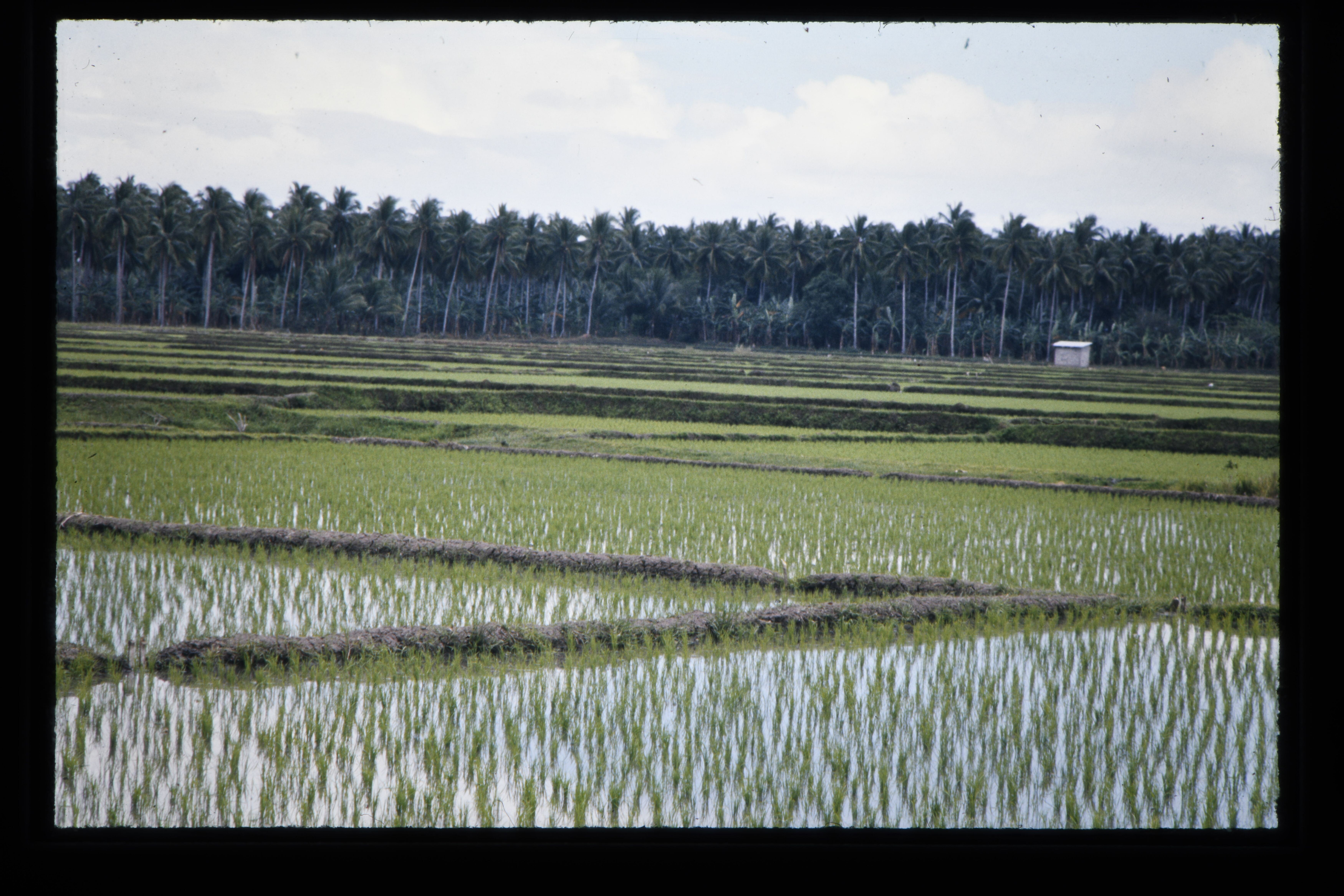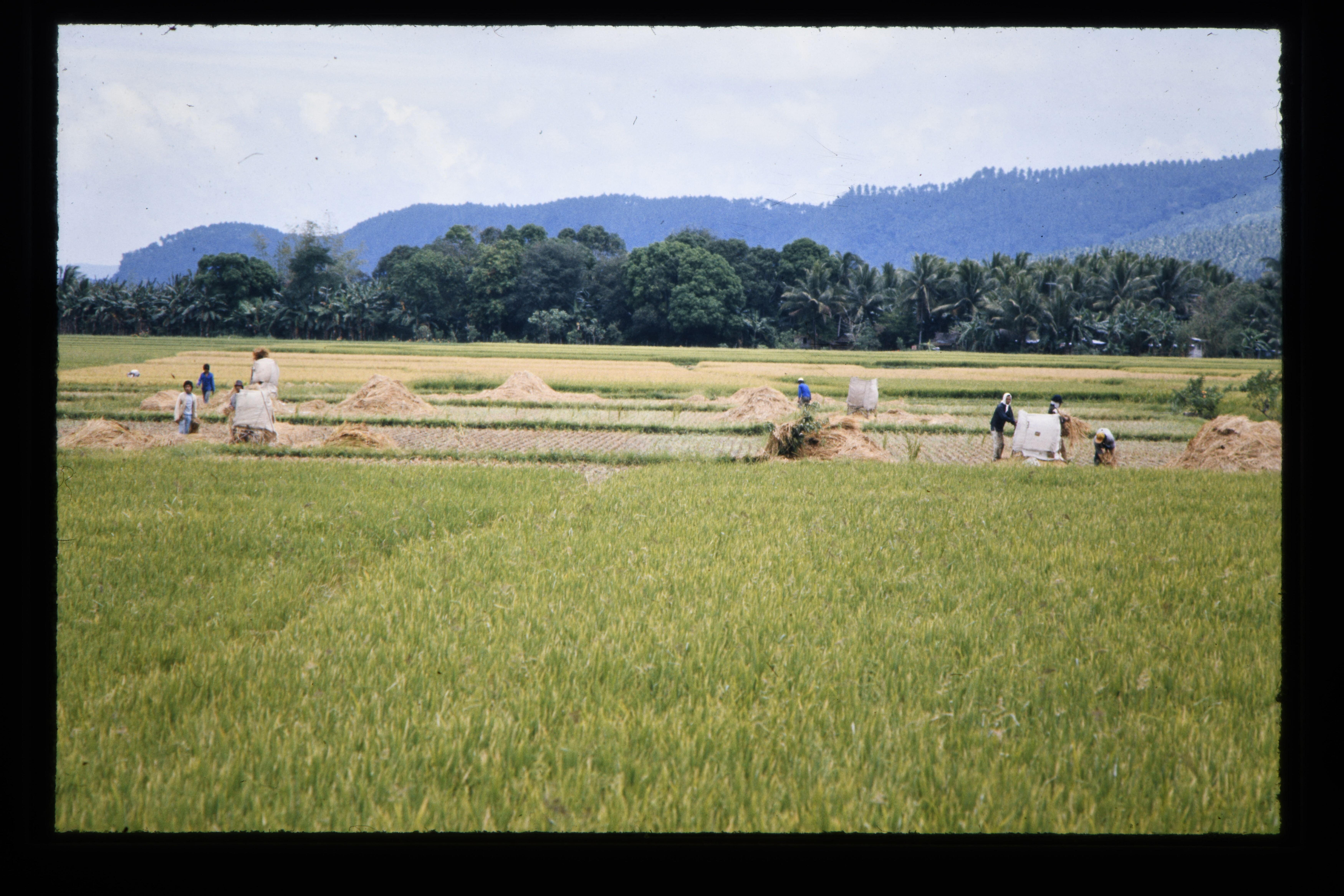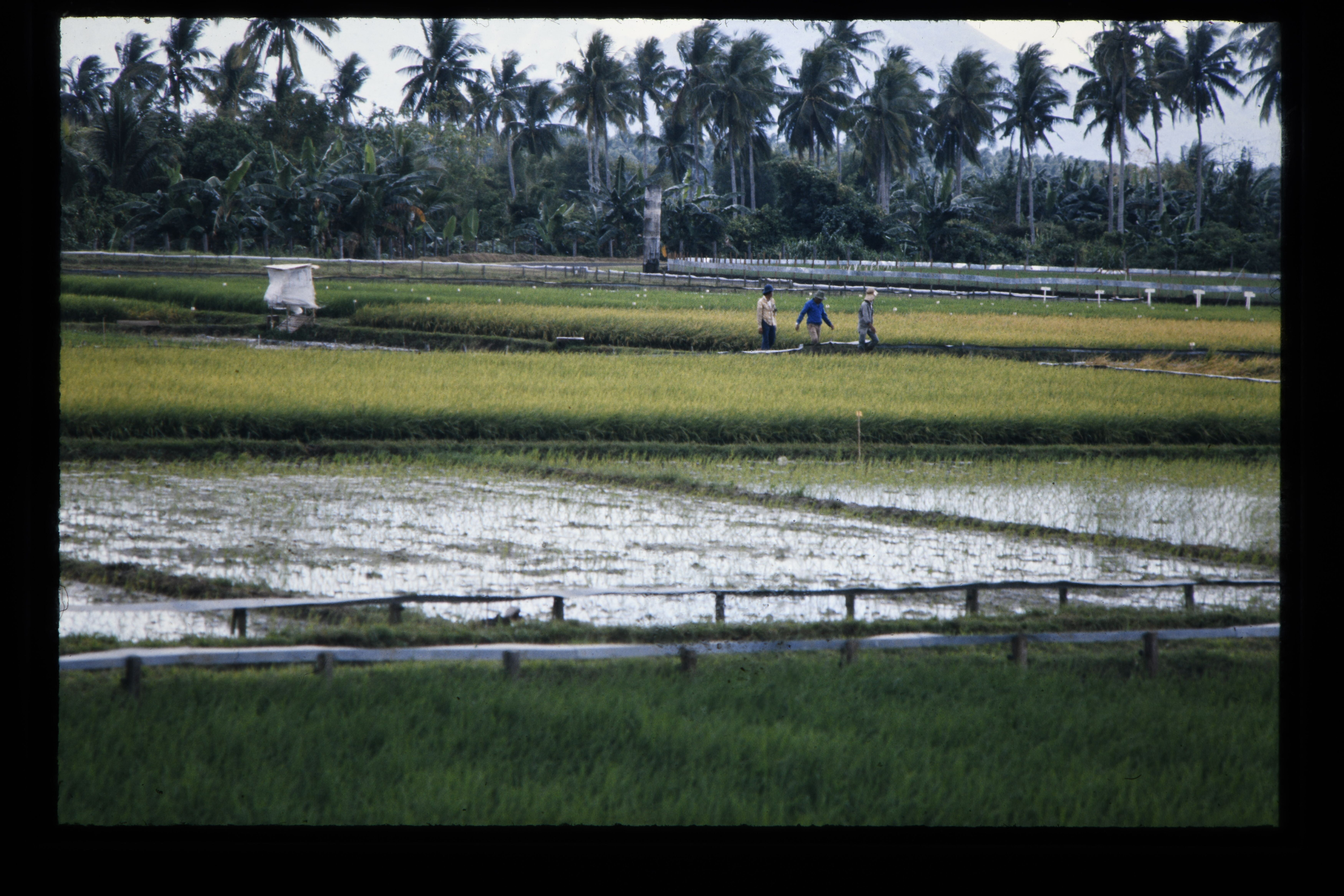 'Dorsende boeren op rijstvelden bij Los Baños'