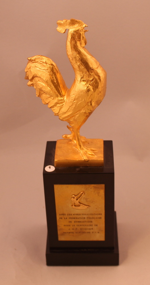 Beeld van vergulde haan geschonken aan J. Sommer