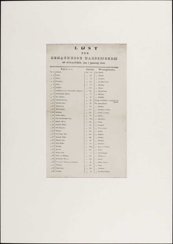 Lijst der gemaskerde hardrijderij op schaatsen den 7...