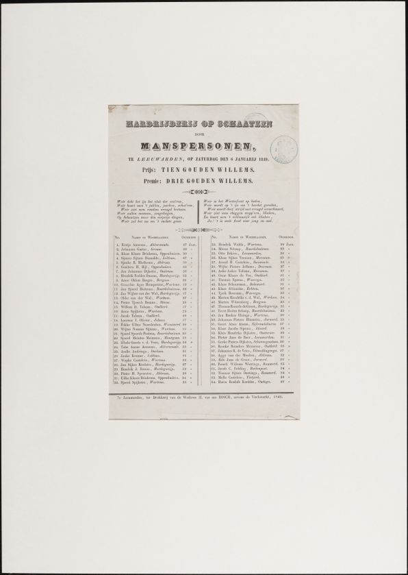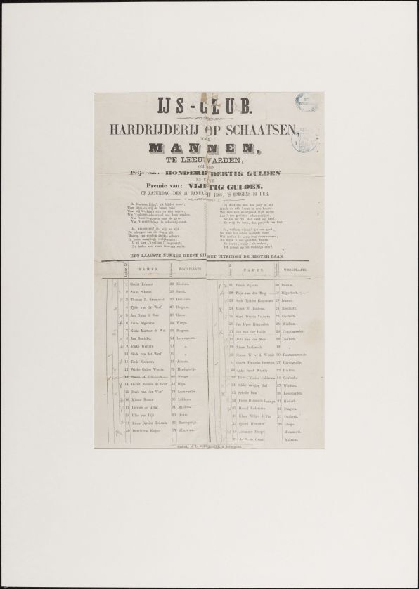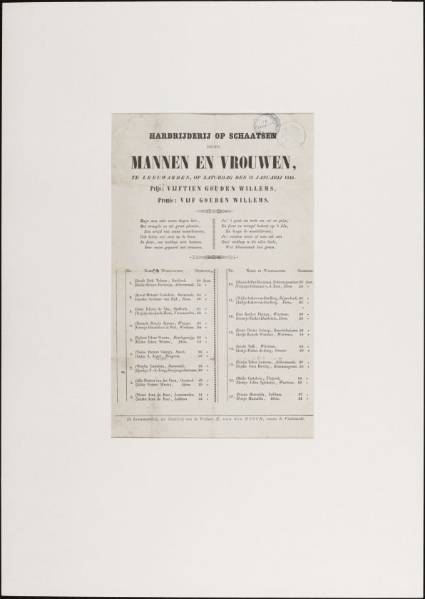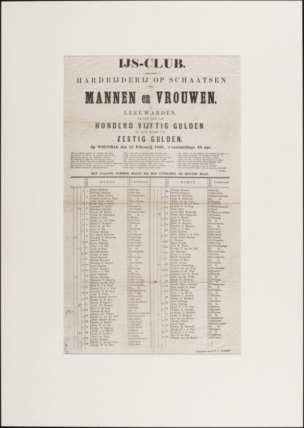 Schaatswedstrijd voor Mannen en Vrouwen te Leeuwarden