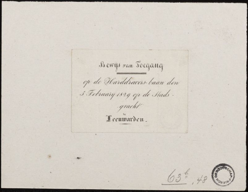 Bewijs van toegang op de harddravers-baan den 5 febr...