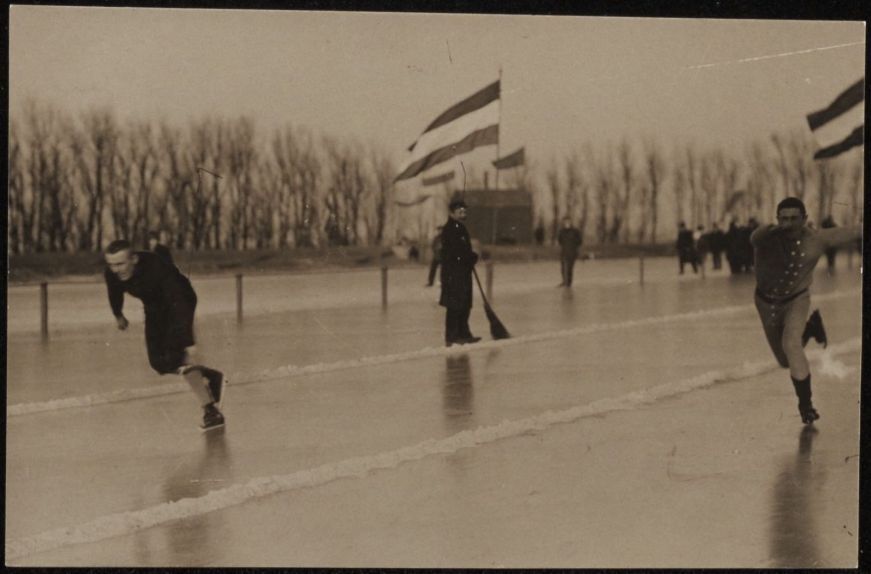 Hardrijderij voor mannen op de ijsbaan te Leeuwarden...