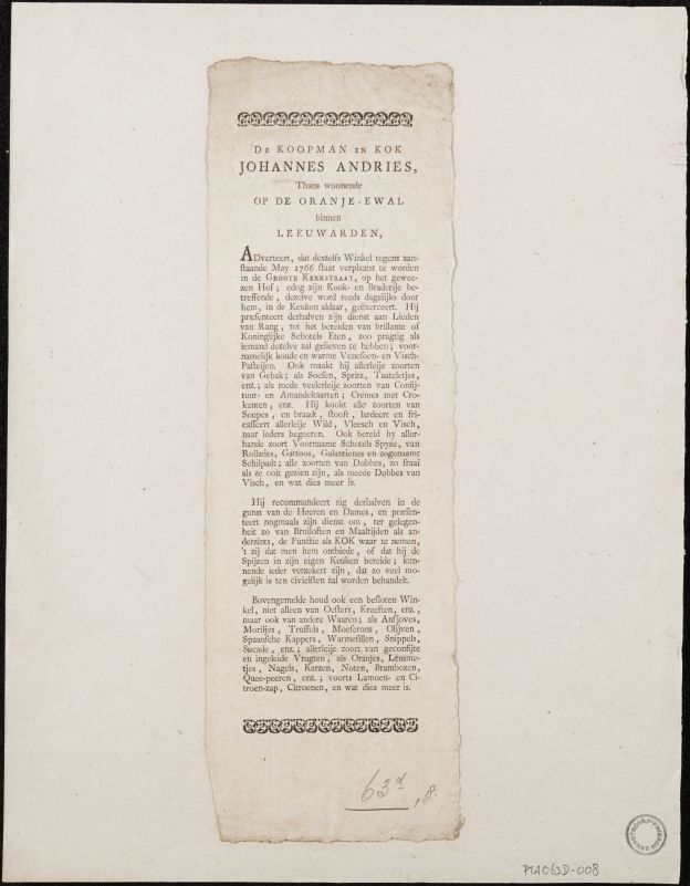 De Kopman en Kok Johannes Andries adverteert dat zij...