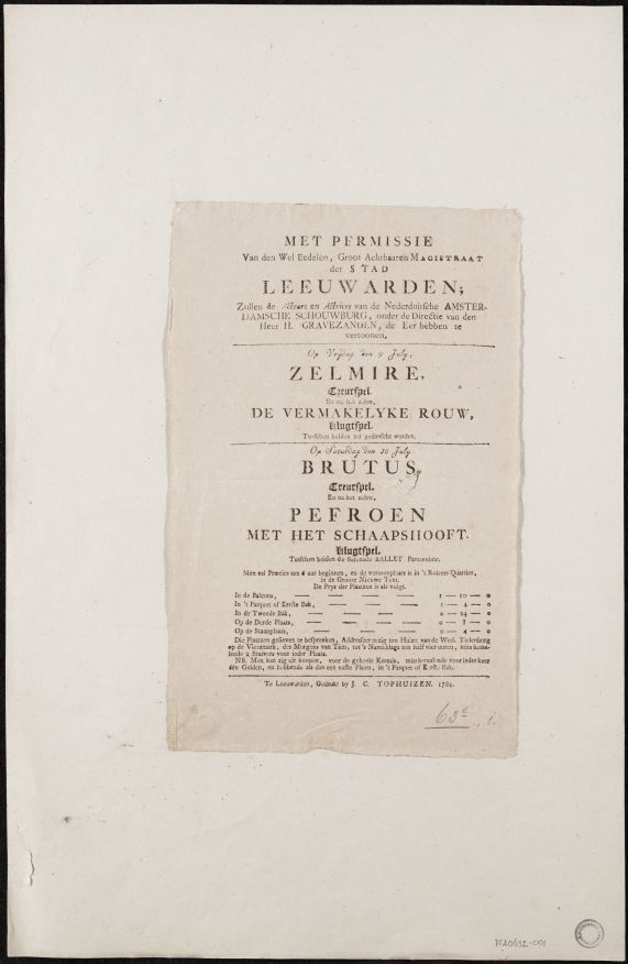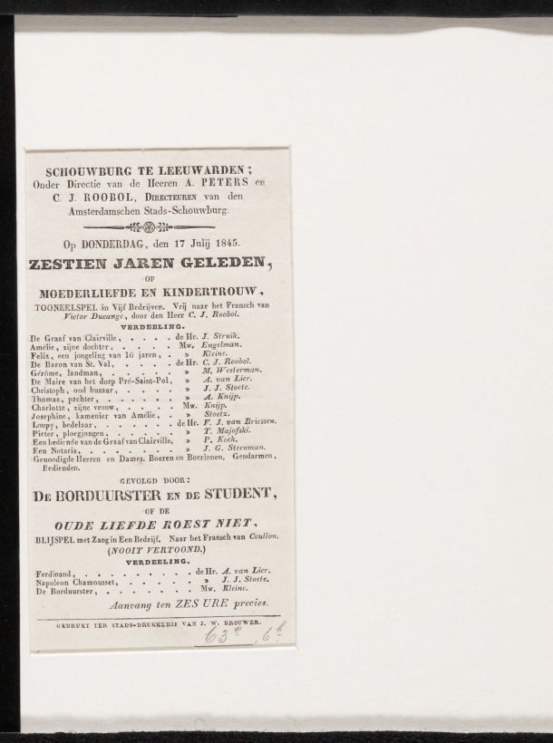 Programma van de opvoering van de stukken Zestien Ja...