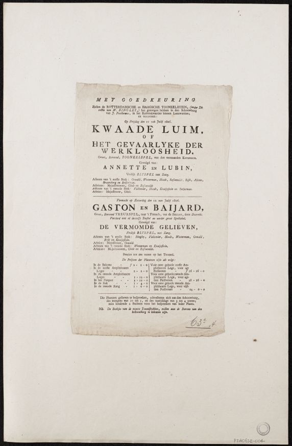 Programma van de opvoering door de Rotterdamsche en ...