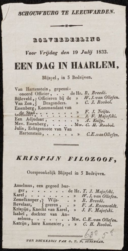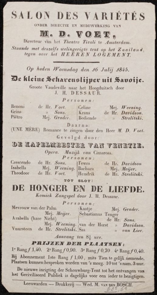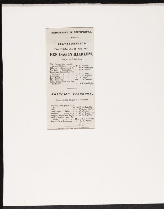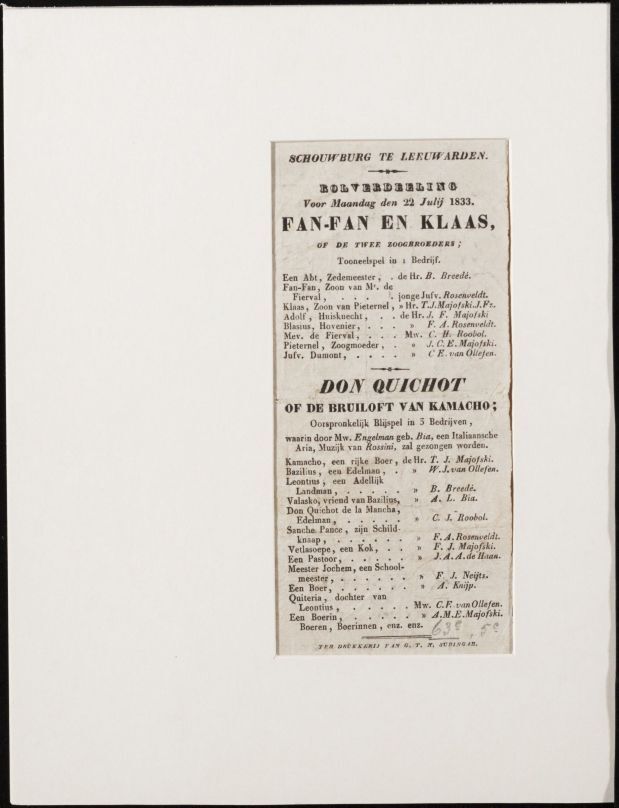 Programma van de opvoering van de stukken De kleine ...