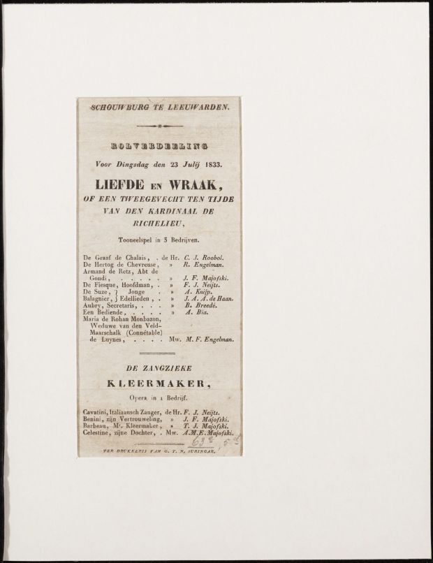 Programma van de opvoering door de Nederduitsche Gea...