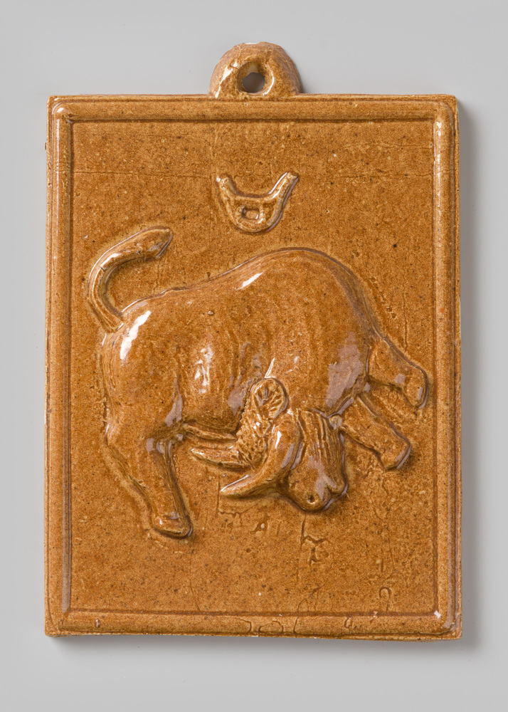 tegel van aardewerk in reliëf, voorstellende: sterre...