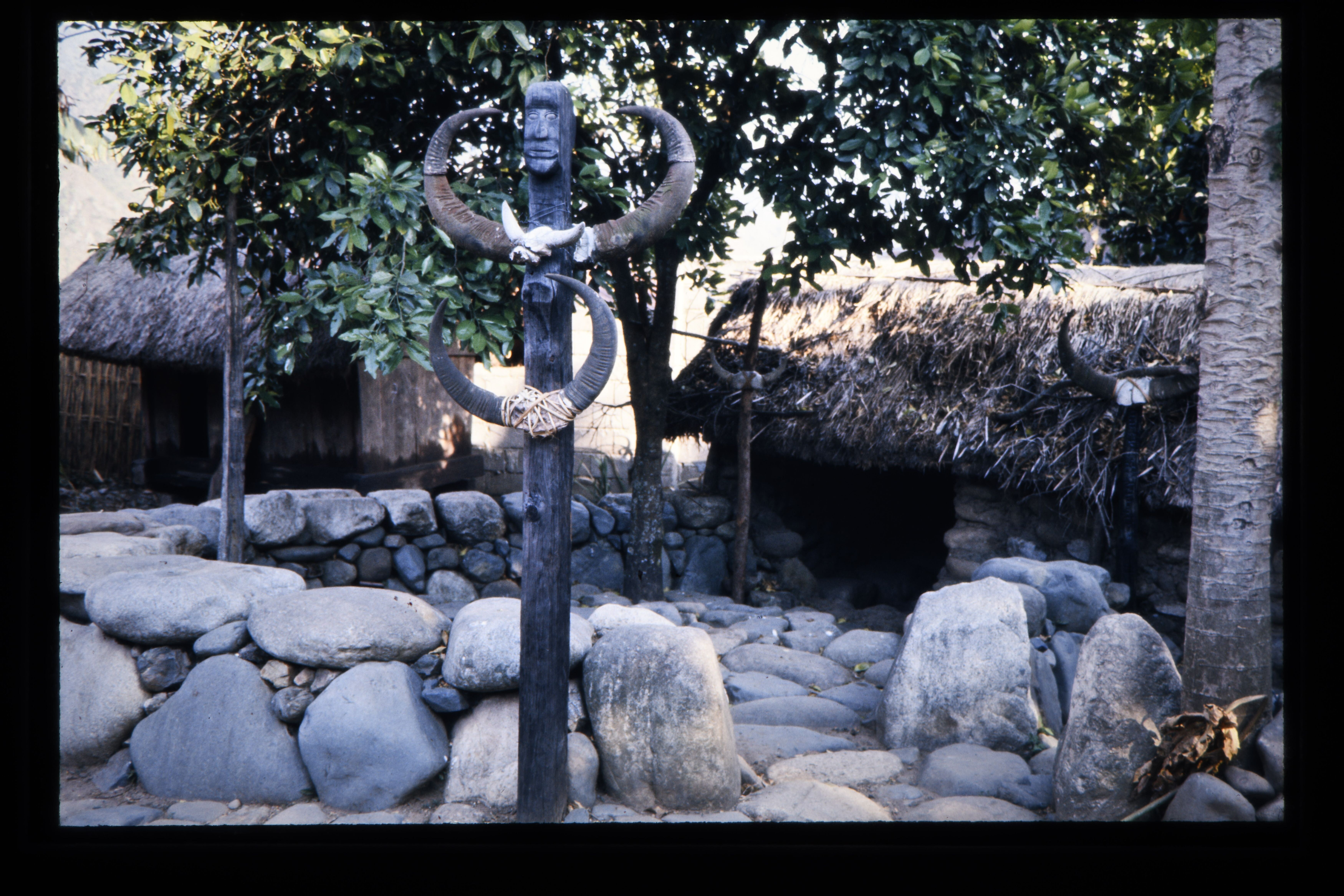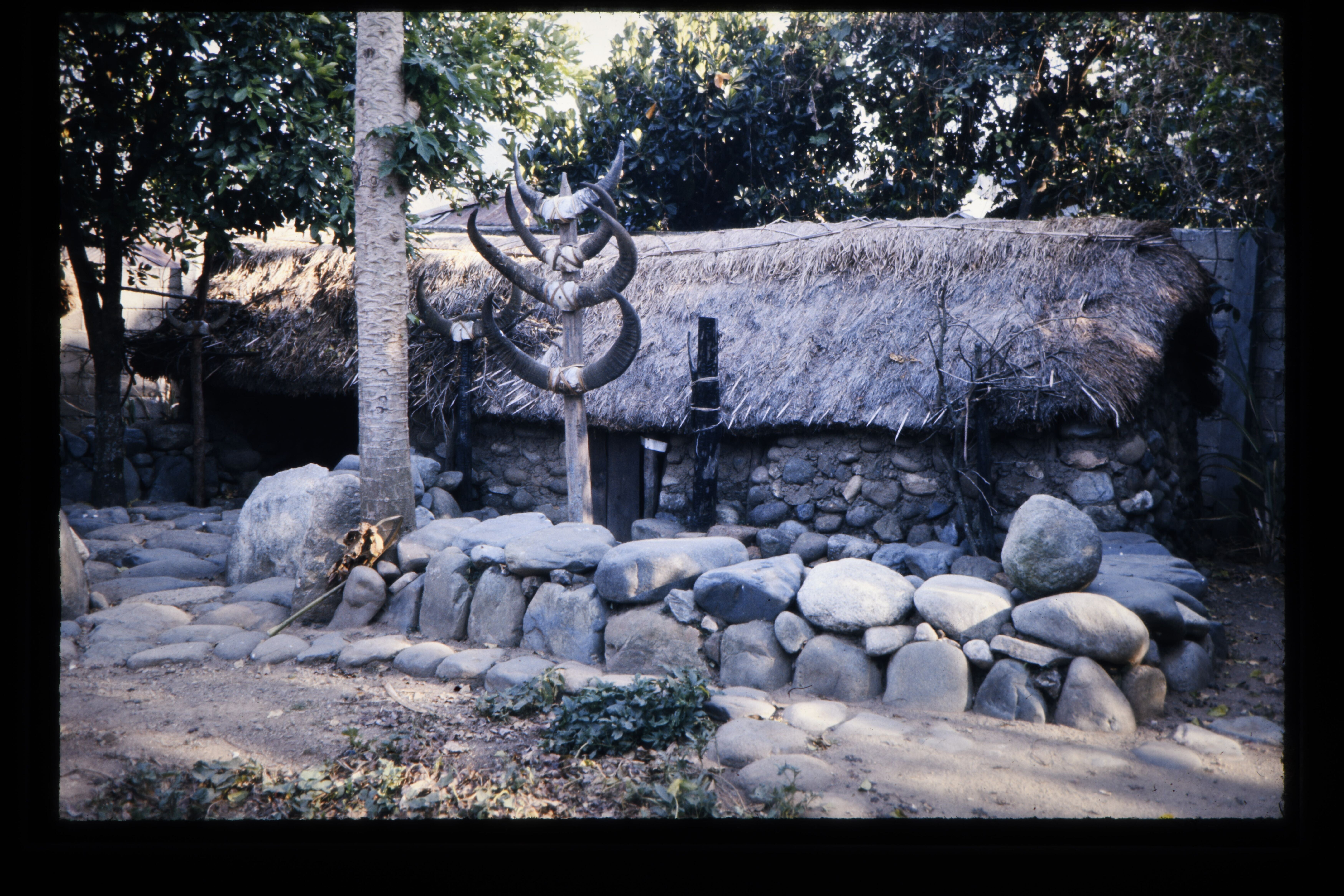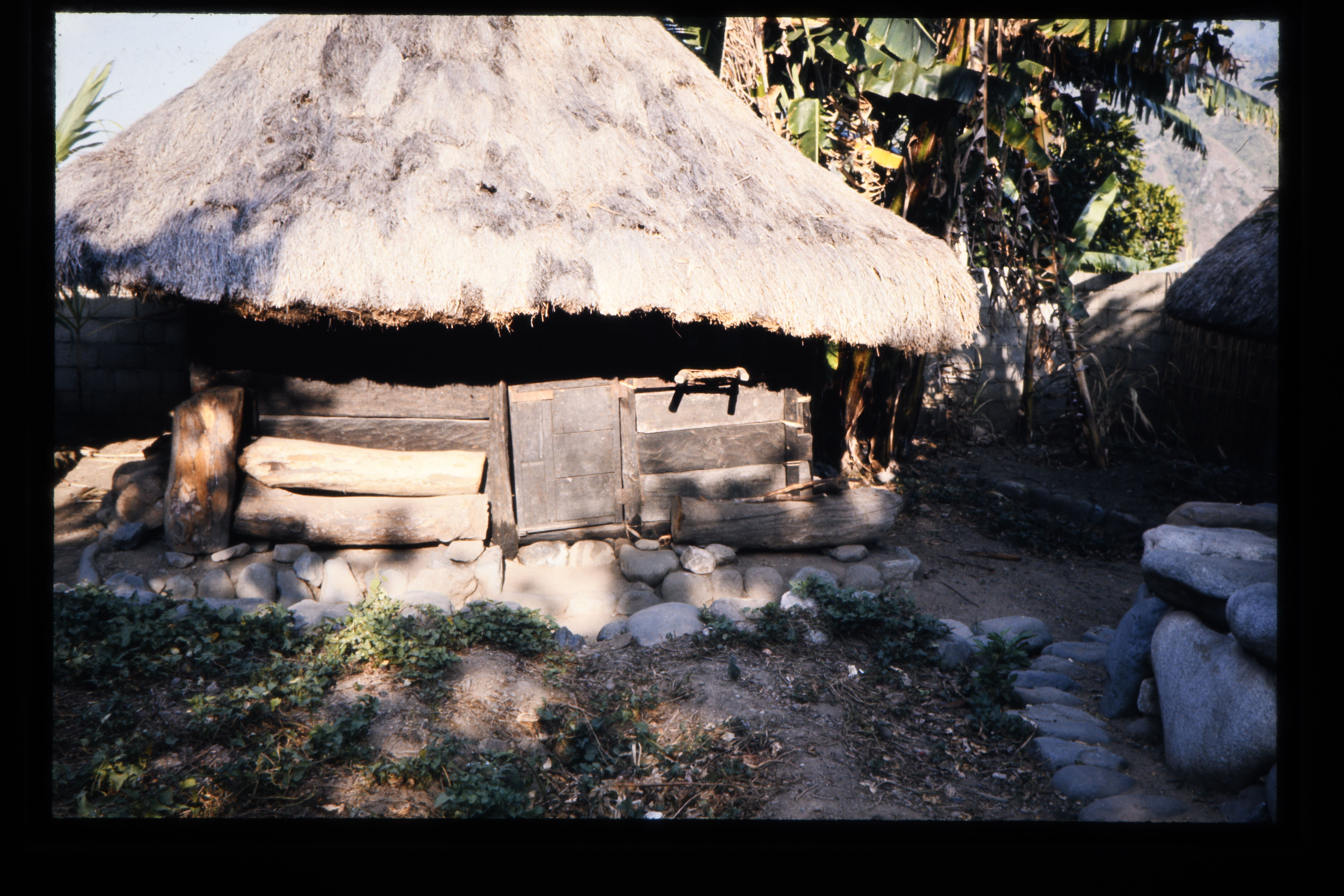 'Hut van de hoofdman met stenen muur die vergaderpla...