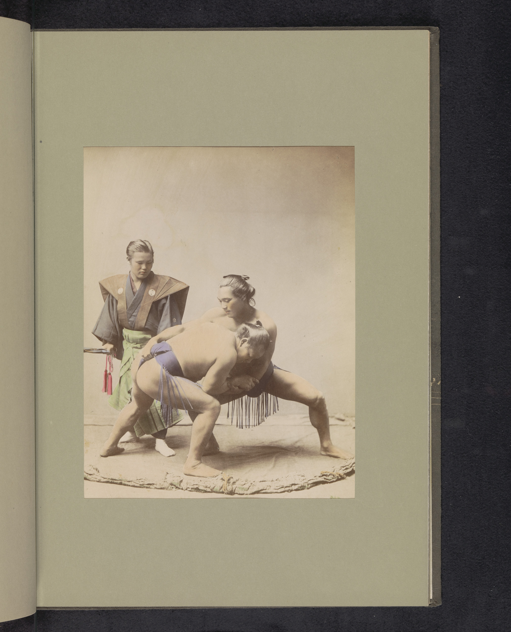 Twee sumoworstelaars en een scheidsrechter