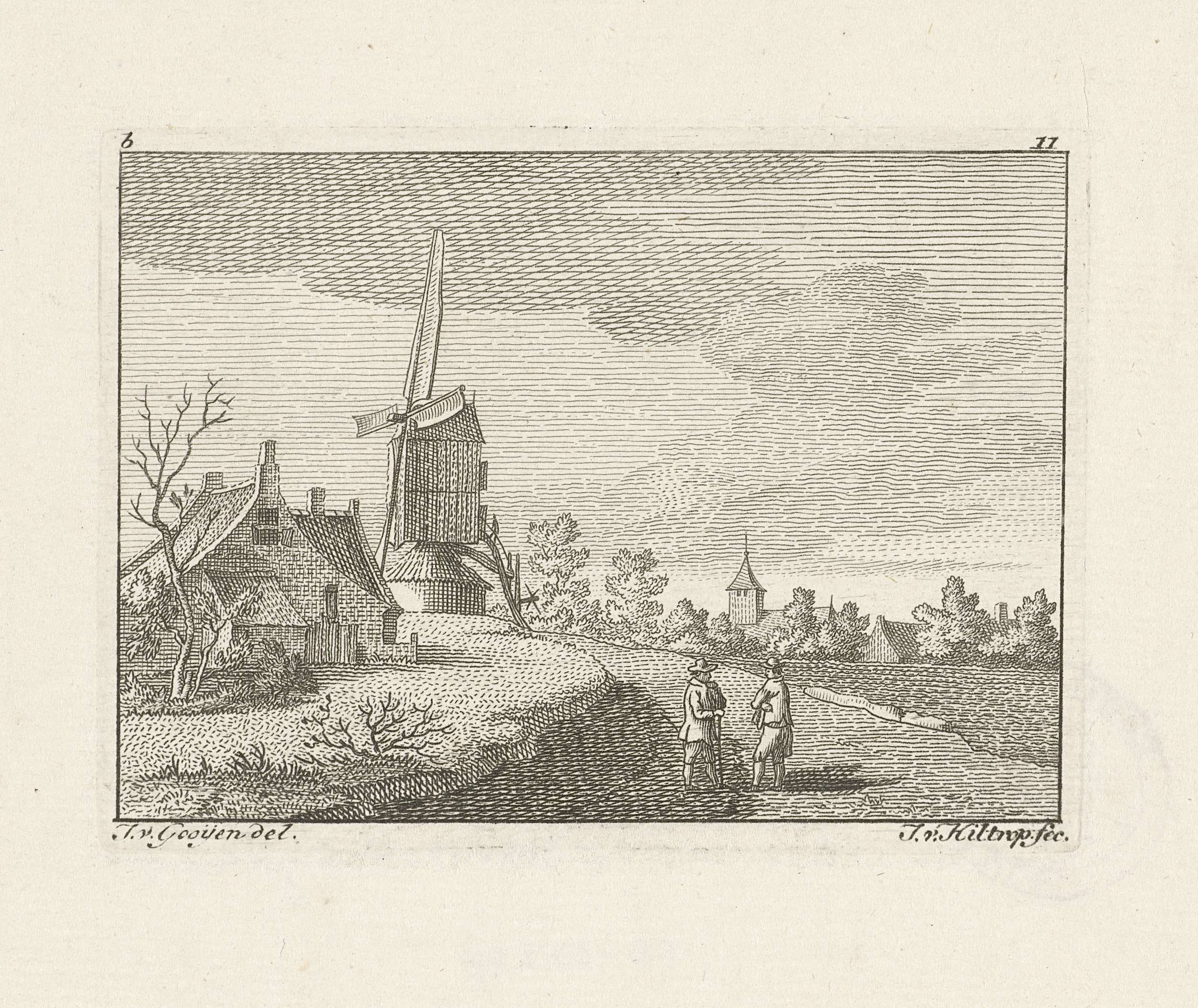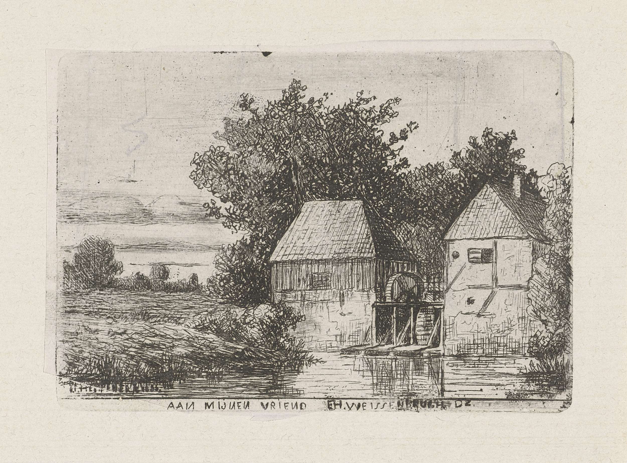 Landschap met een boerderij en een molen