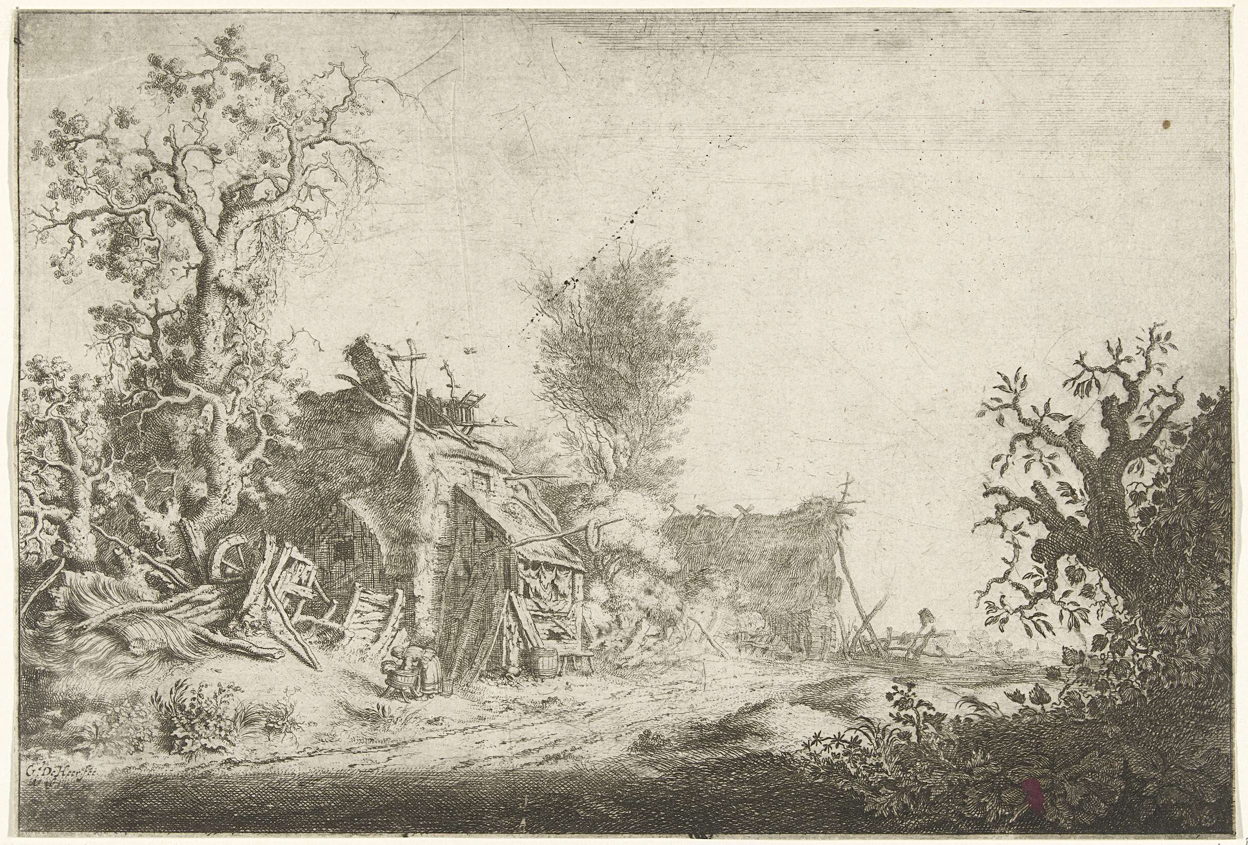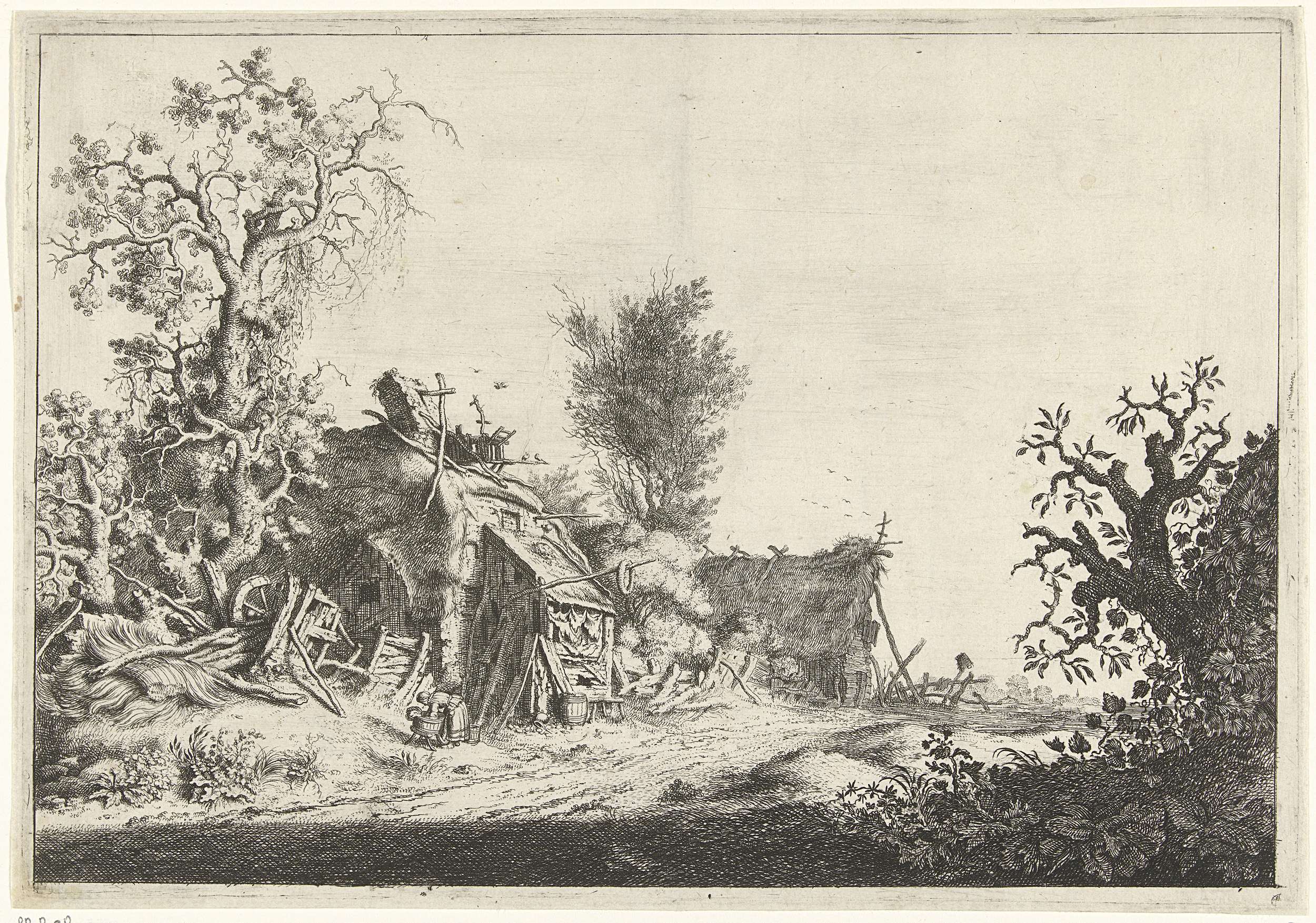 Landschap met vervallen boerderijen